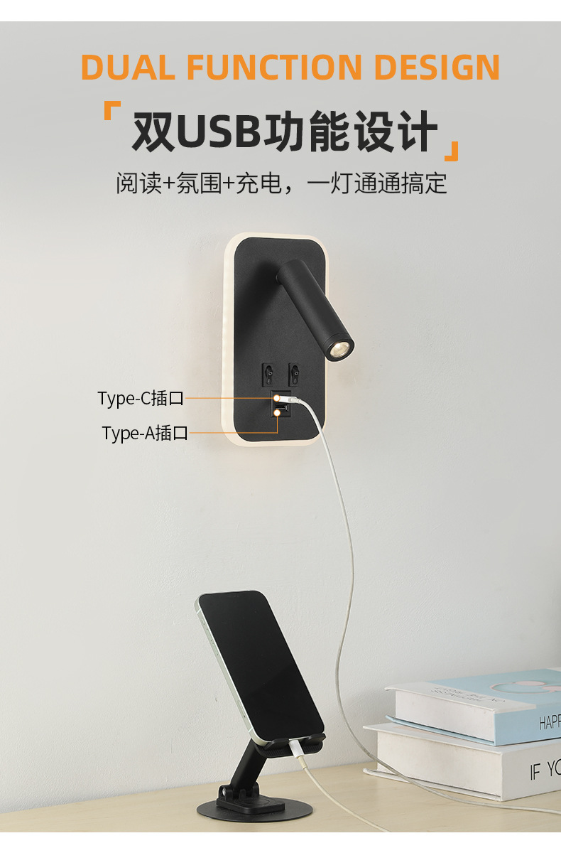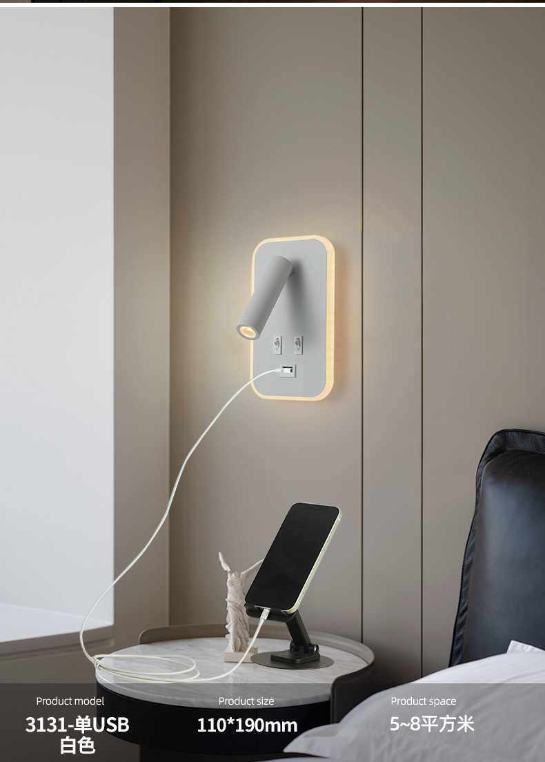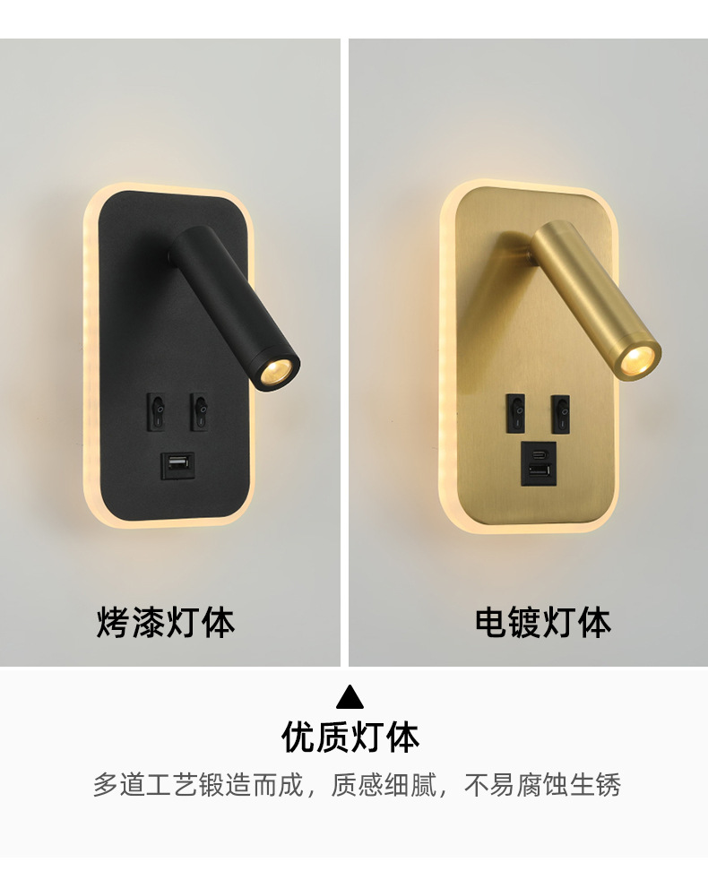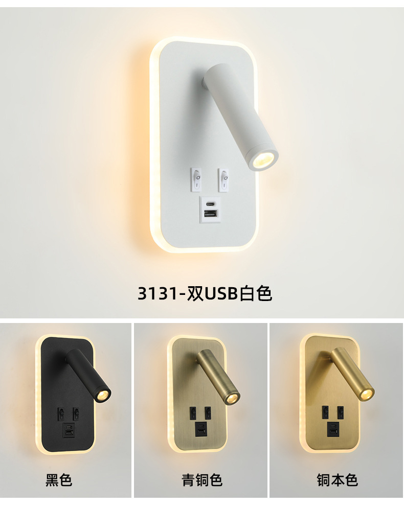 크로스보더 벽 조명 led 벽 램프 미니멀리스트 침실 머리맡 독서 램프(스위치 포함) USBAC 충전식 벽 램프스토어 가기