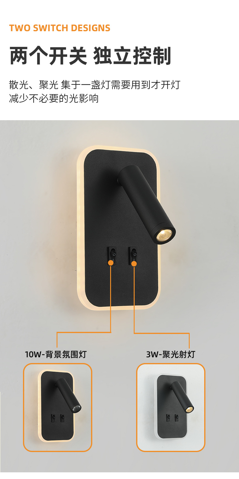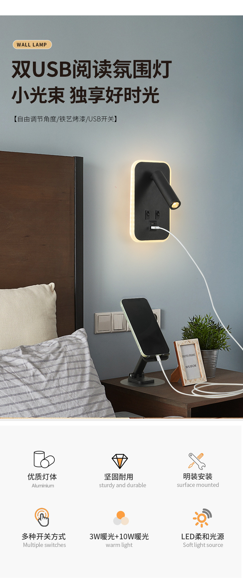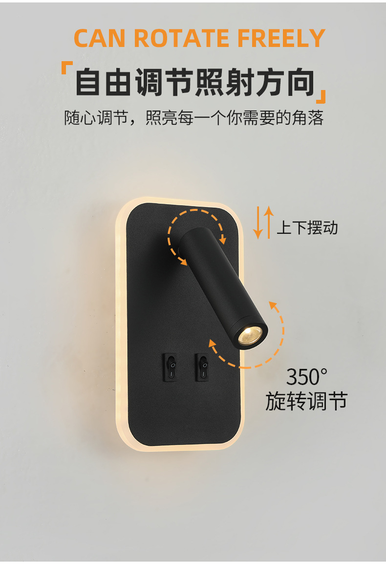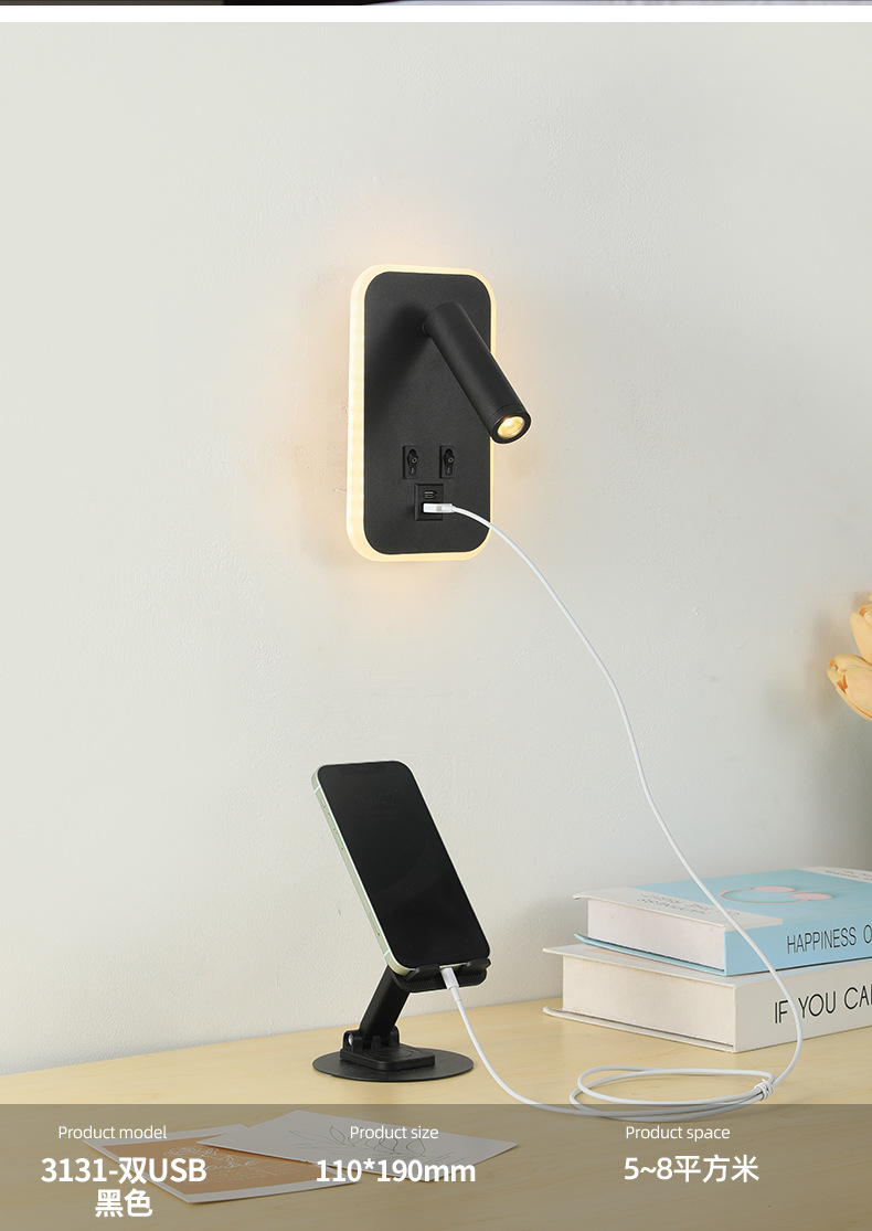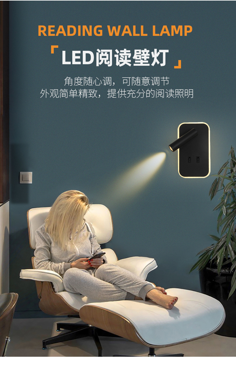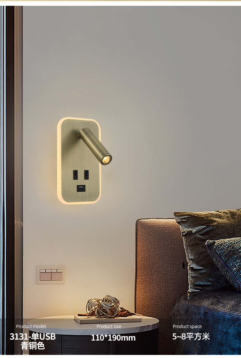 크로스보더 벽 조명 led 벽 램프 미니멀리스트 침실 머리맡 독서 램프(스위치 포함) USBAC 충전식 벽 램프