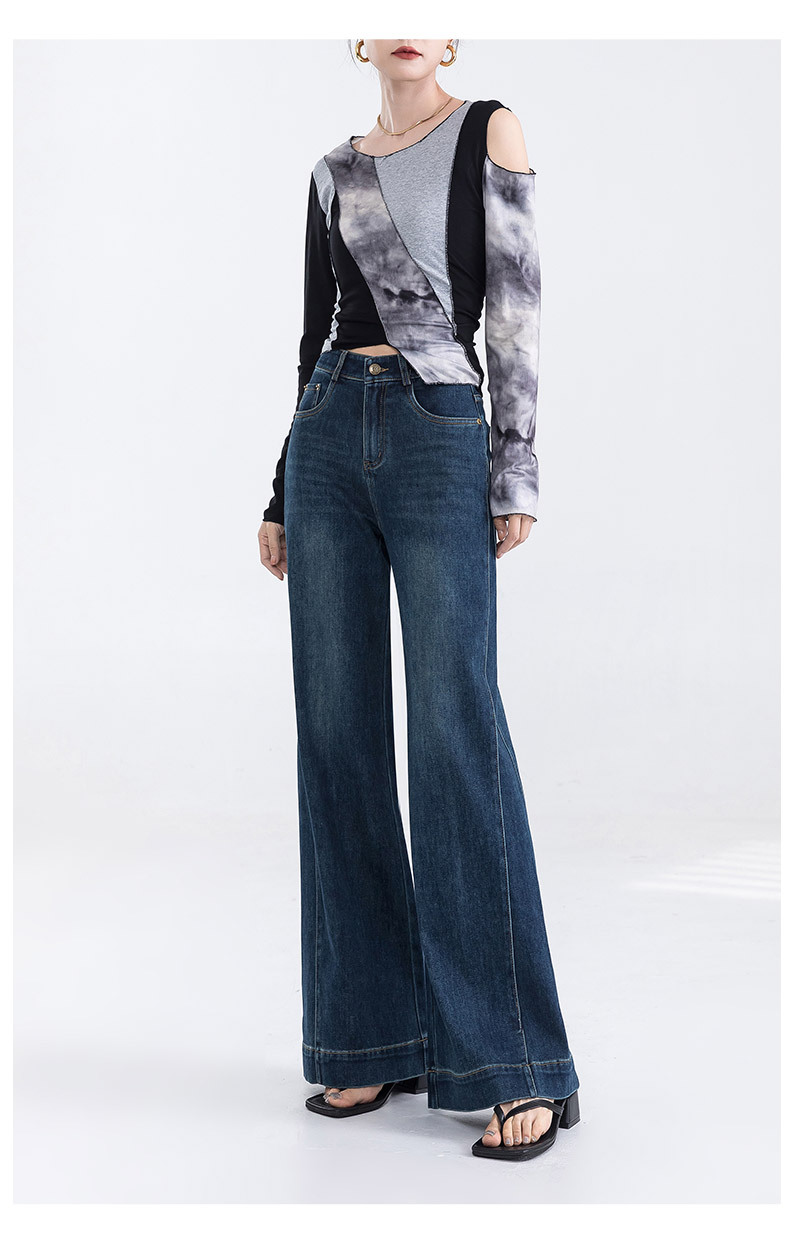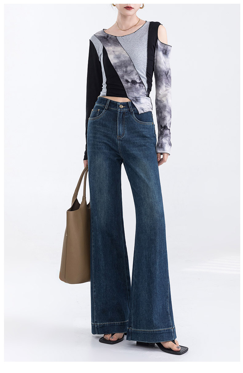 2025년 신상 명품 스타일 데님 플레어 팬츠 여성용, 고급스러운 하이웨이스트 신축성 슬림핏 와이드 레그 팬츠 여성용 청바지스토어 가기