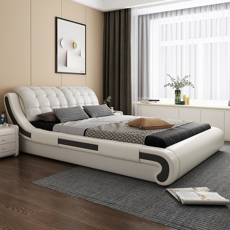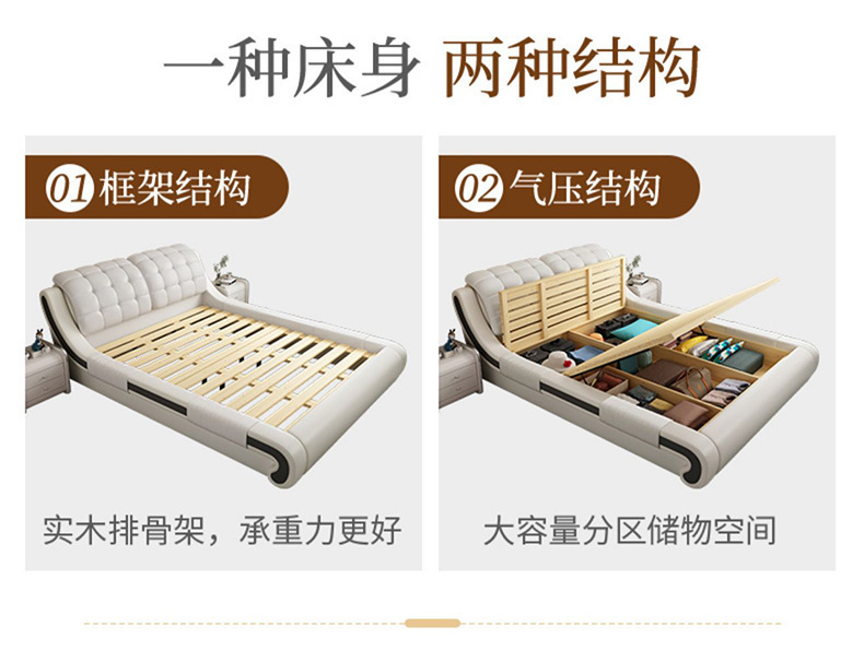 가죽 아트 침대 1.8 m 더블 퀸 침대 1.5 공기 압력 저장 침대 현대 간단한 기술 직물 부드러운 가구 웨딩 침대