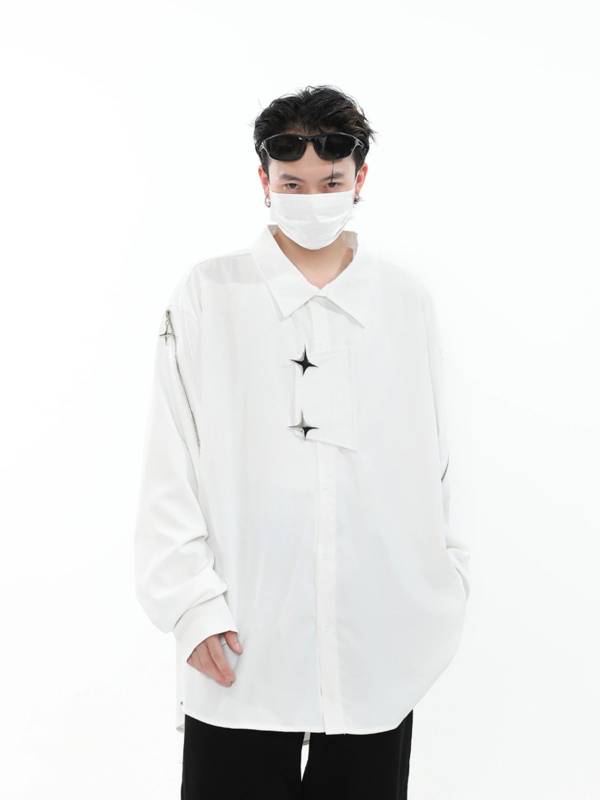 옷깃 하이 엔드 캐주얼 디자인 셔츠 남성용 드롭 오프 소형 포인팅 칼라 느슨한 프렌치 화이트 긴팔 셔츠스토어 가기
