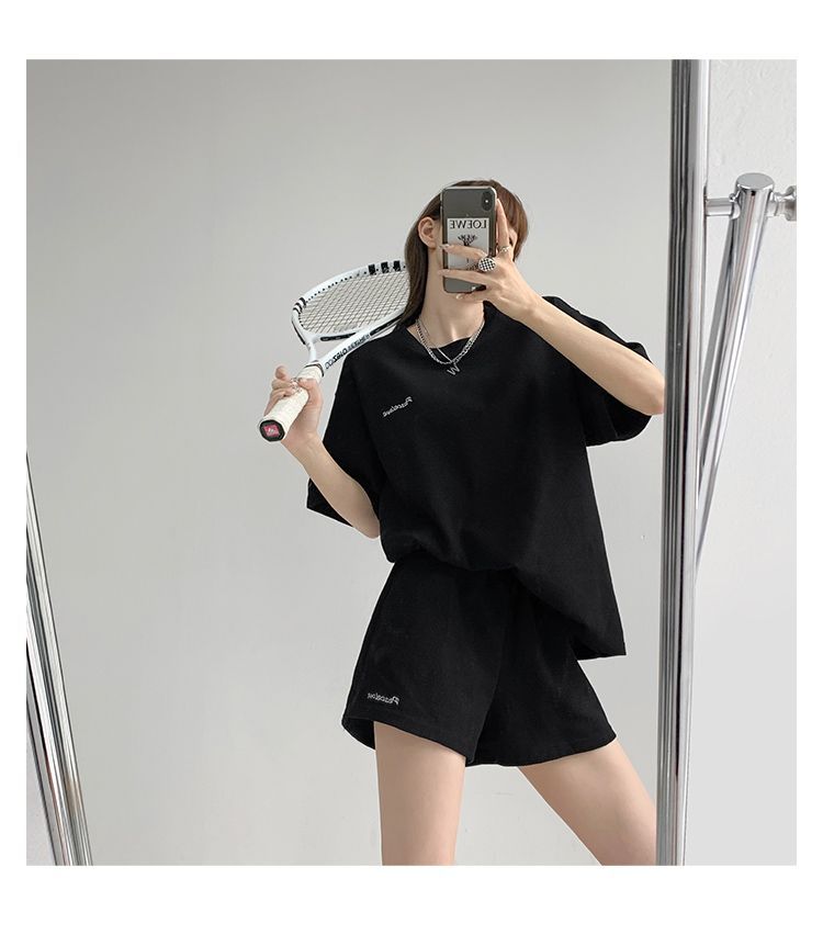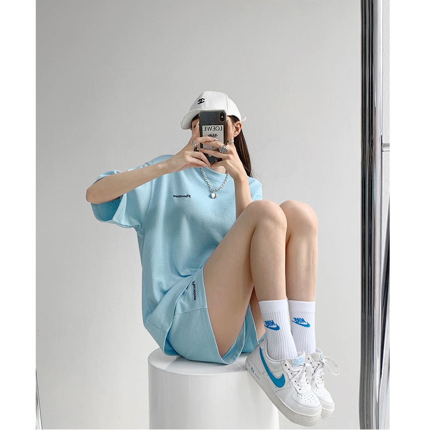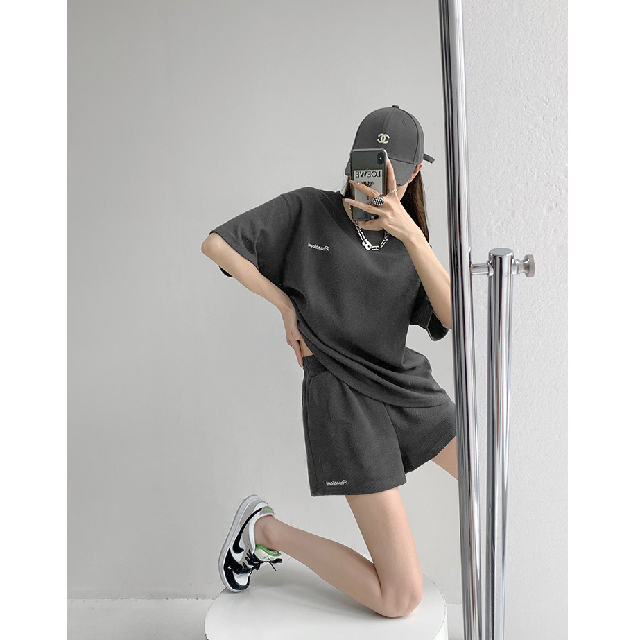 2024 와플릭 여름 캐주얼 스포츠 패션 느슨한 짧은 소매 반바지 2 조각 세트 작은 자수 세트스토어 가기
