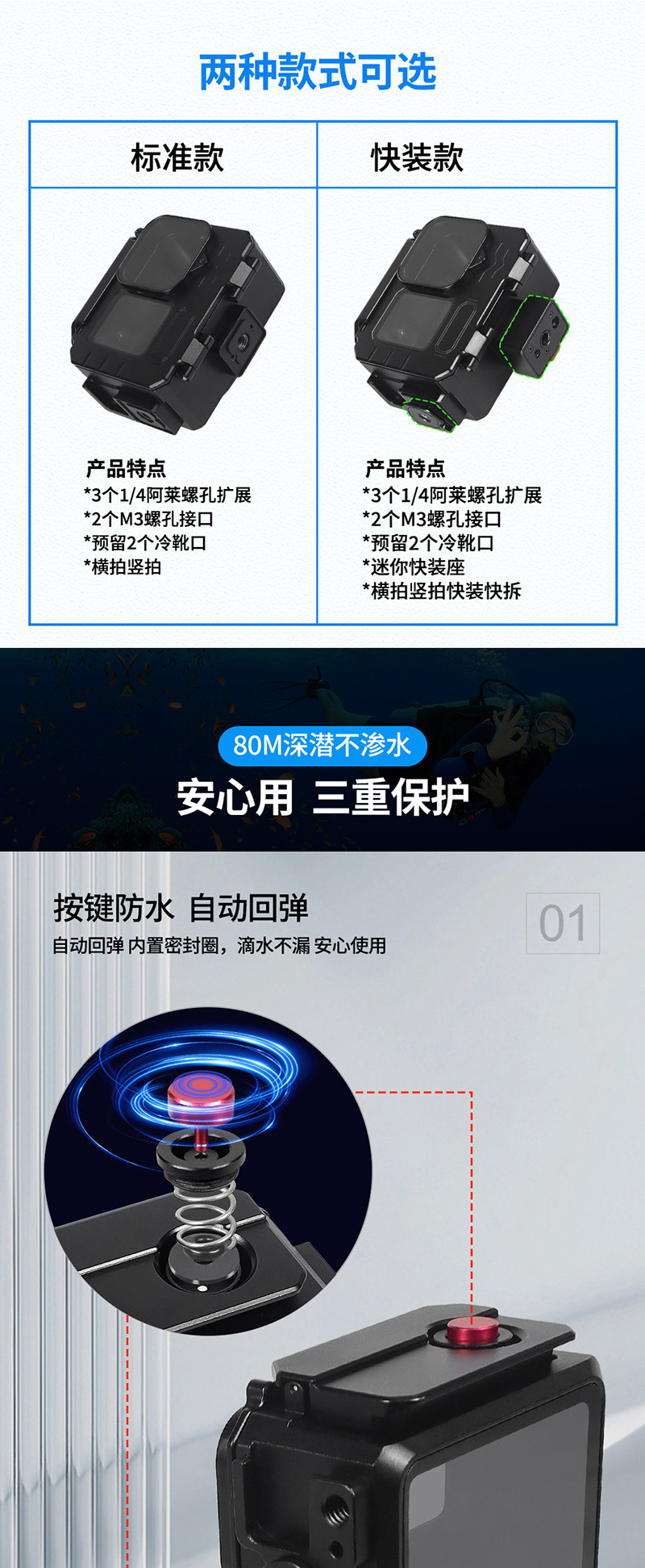 1. 适用于GOPRO12/11/10/9系列运动相机深度潜水使用