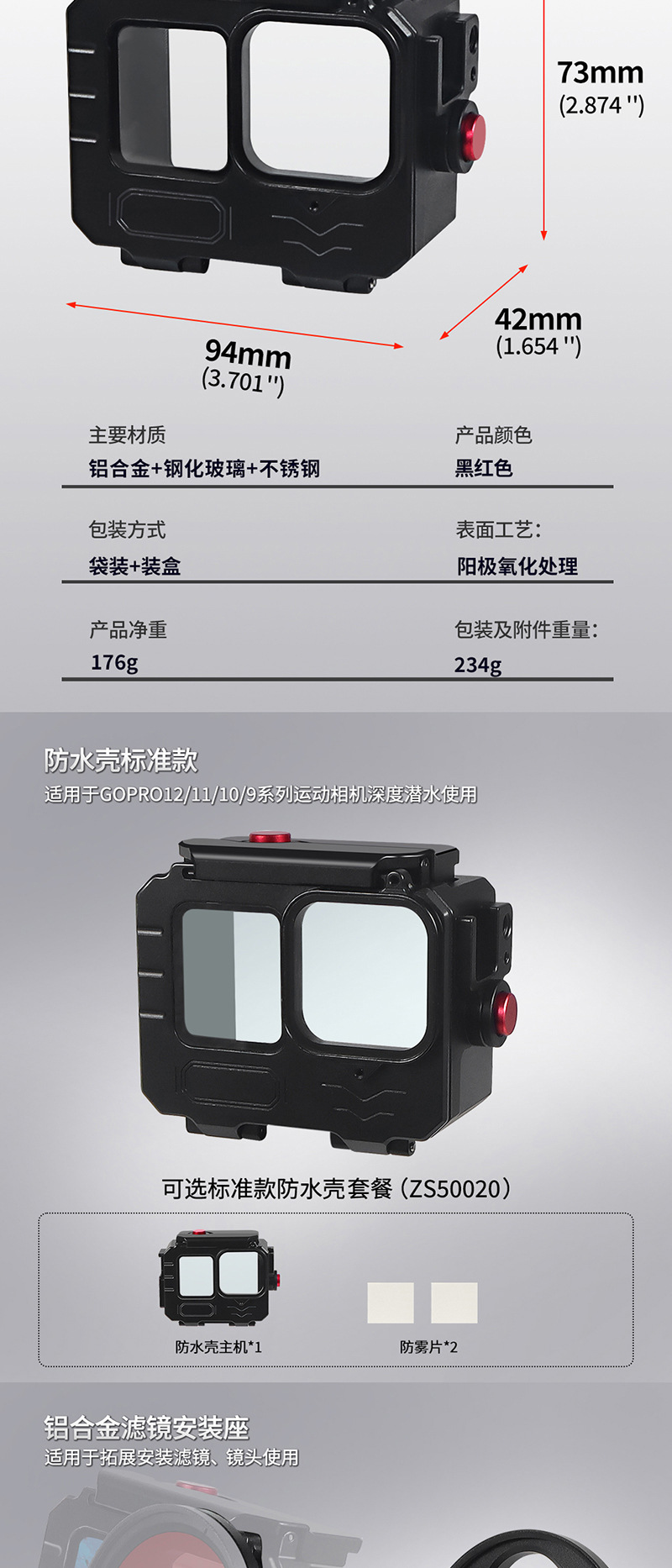 三、名称*数量:基础款铝合金运动相机深海防水壳*1
