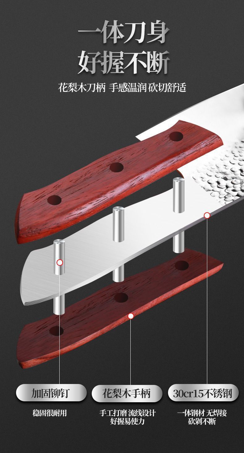 나무 손잡이 수제 주방 칼 가정용 주방 스테인레스 스틸 요리사 날카로운 위조 망치 슬라이스 주방 칼