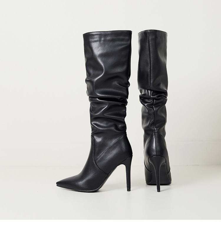 33-43 뾰족한 주름 높은 부츠 여성의 가을 및 겨울 얇은 힐 하이힐 스택 부츠 대외 무역 국경 여성 부츠스토어 가기