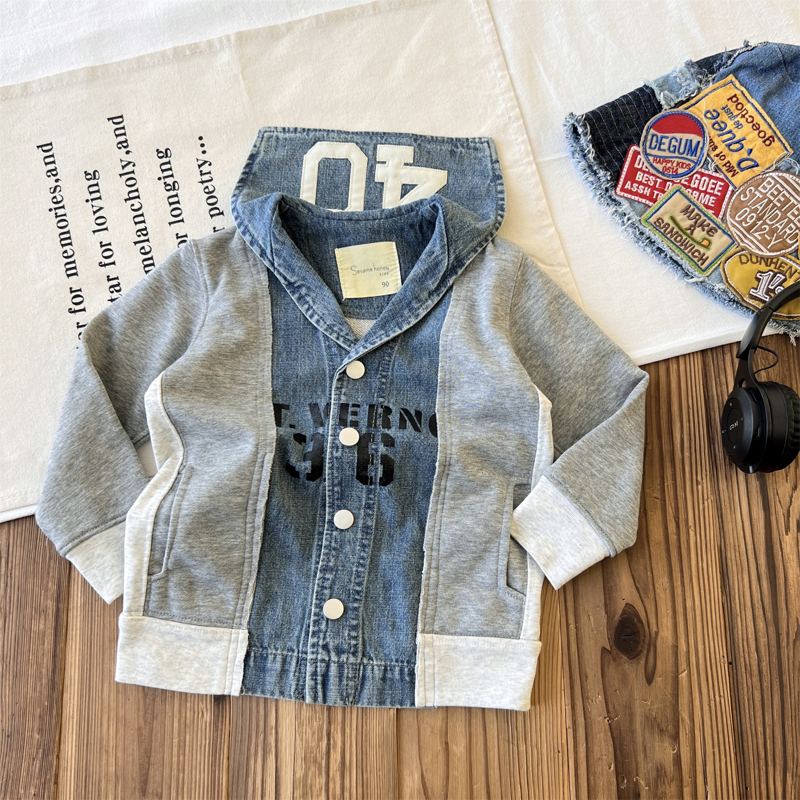 2024 가을 새로운 일본 아동복 중세 DD 어린이 코트 선원 스타일 스웨터 카디건 스티치 데님 탑