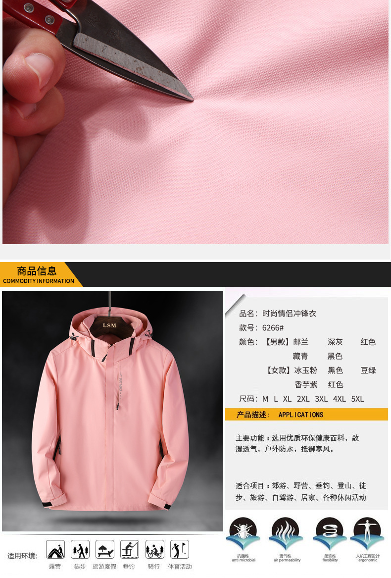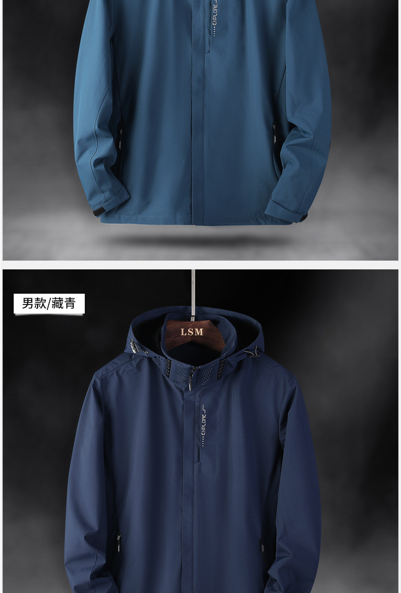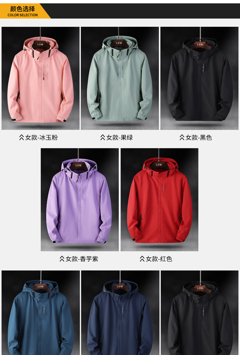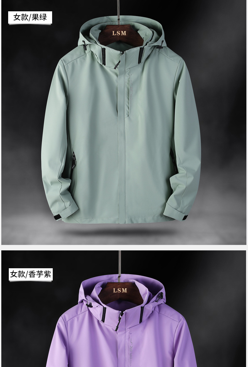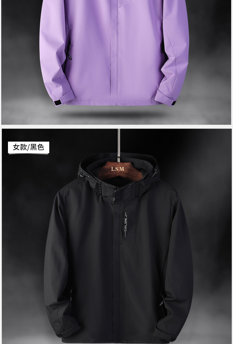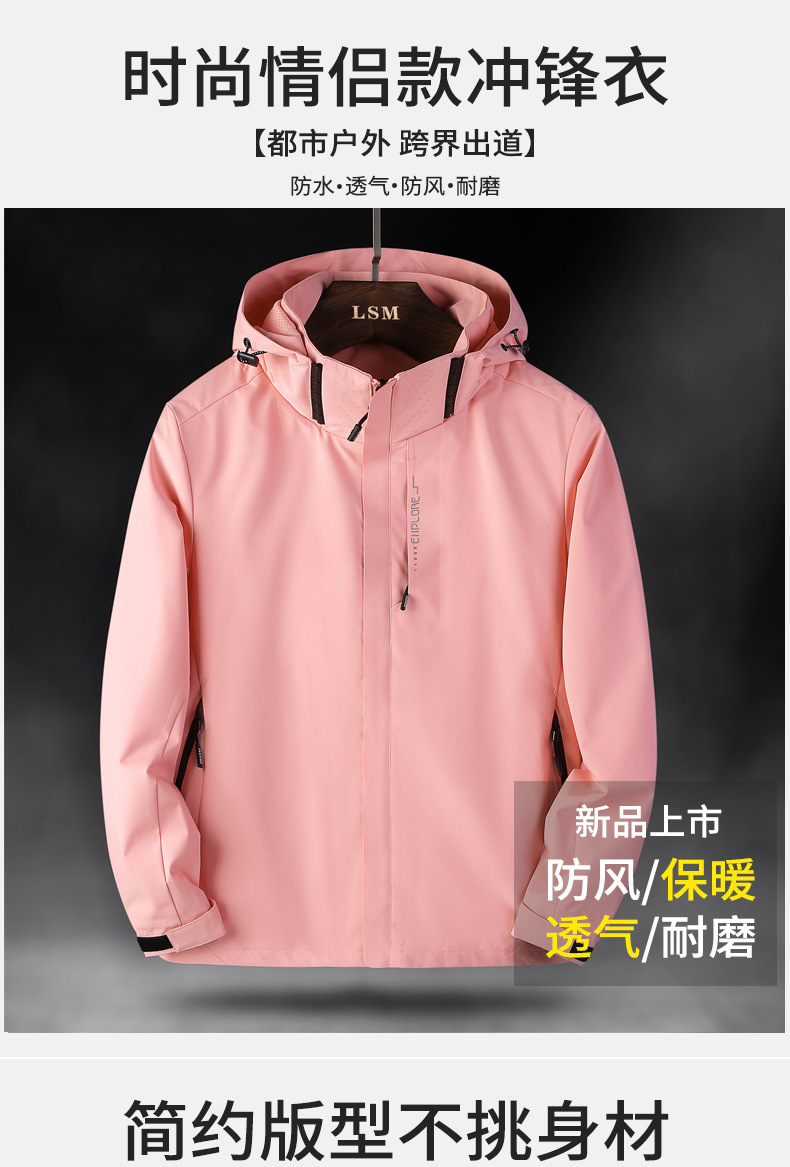 야외 커플 하이킹 산 등반 방수 방풍 충전 옷 빠른 드라이 솔리드 컬러 남성과 여성의 후드 재킷 코트 트렌디스토어 가기