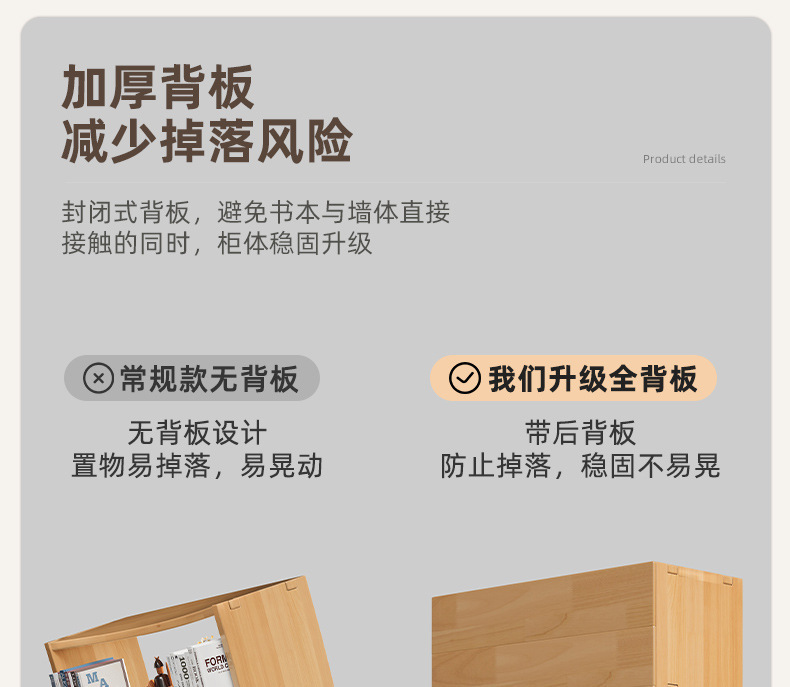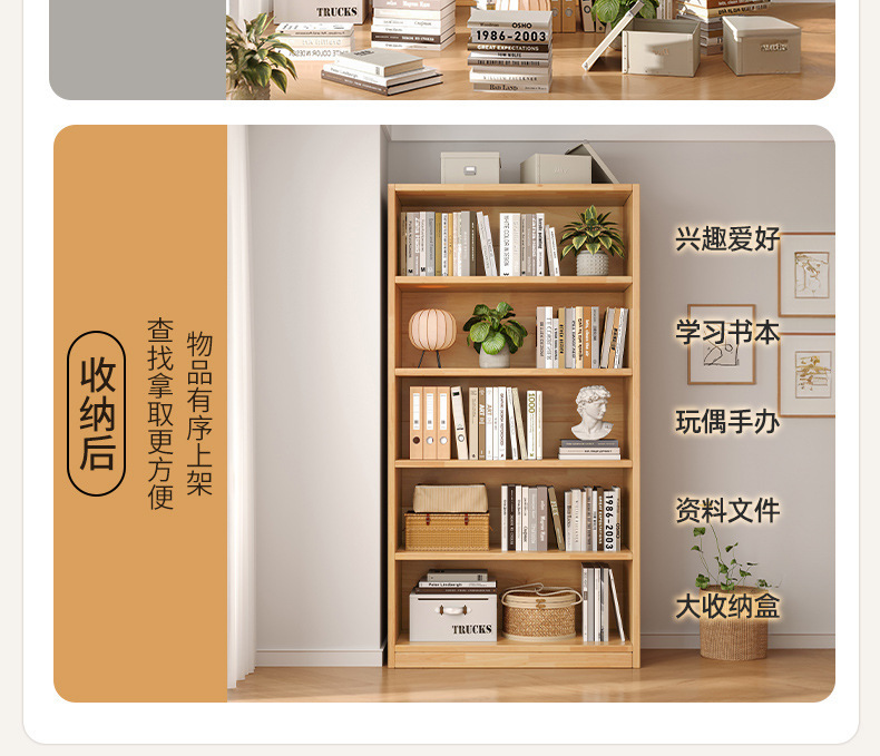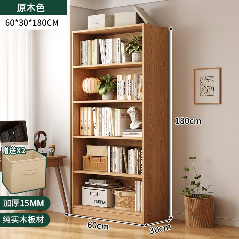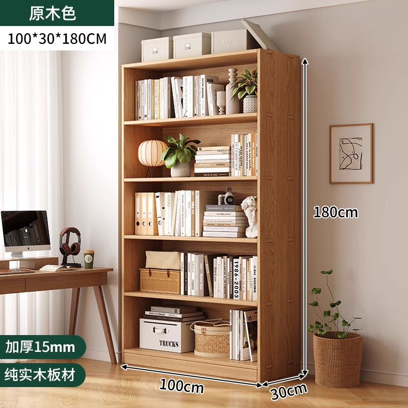 实木书架落地置物架一体靠墙柜子储物柜儿童学生家用收纳柜书柜