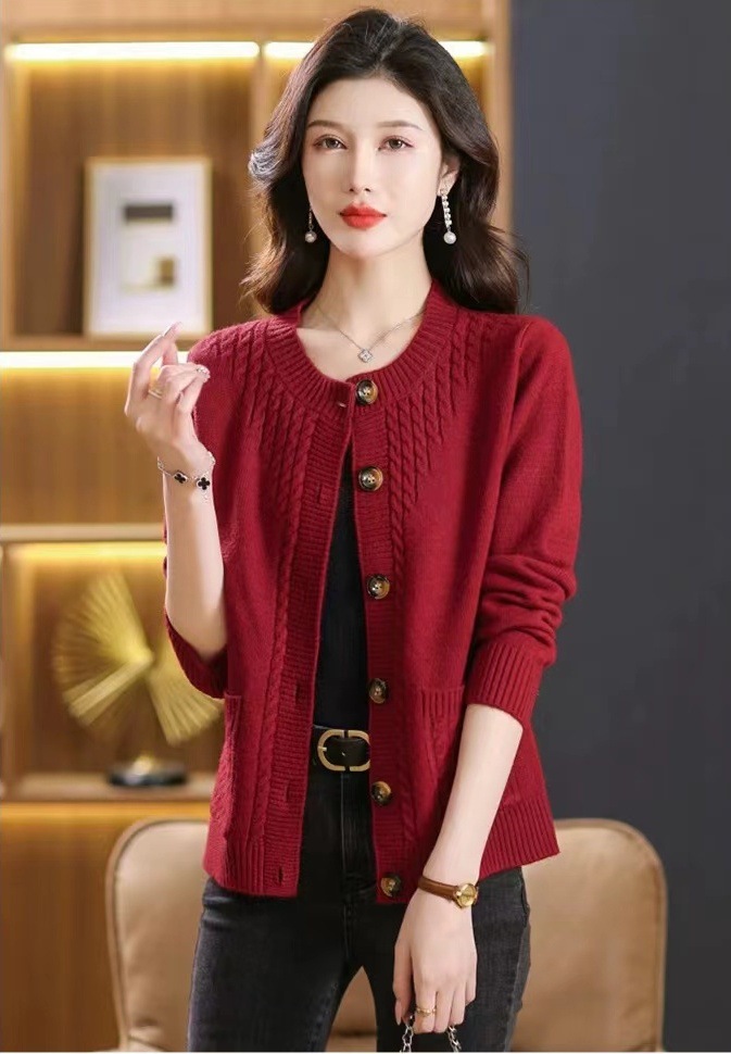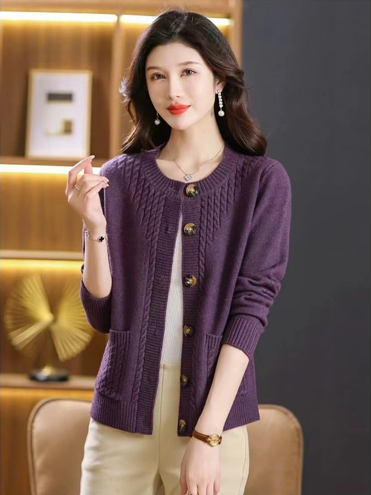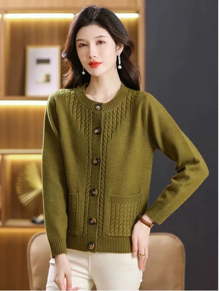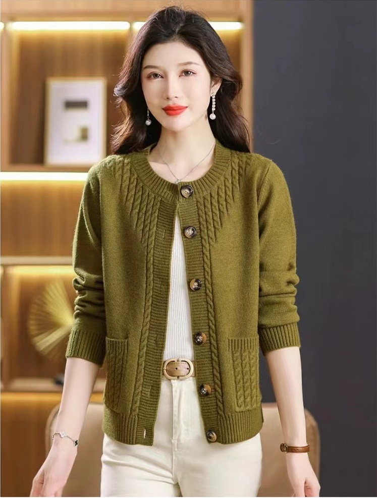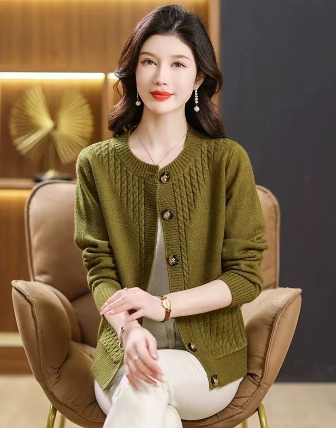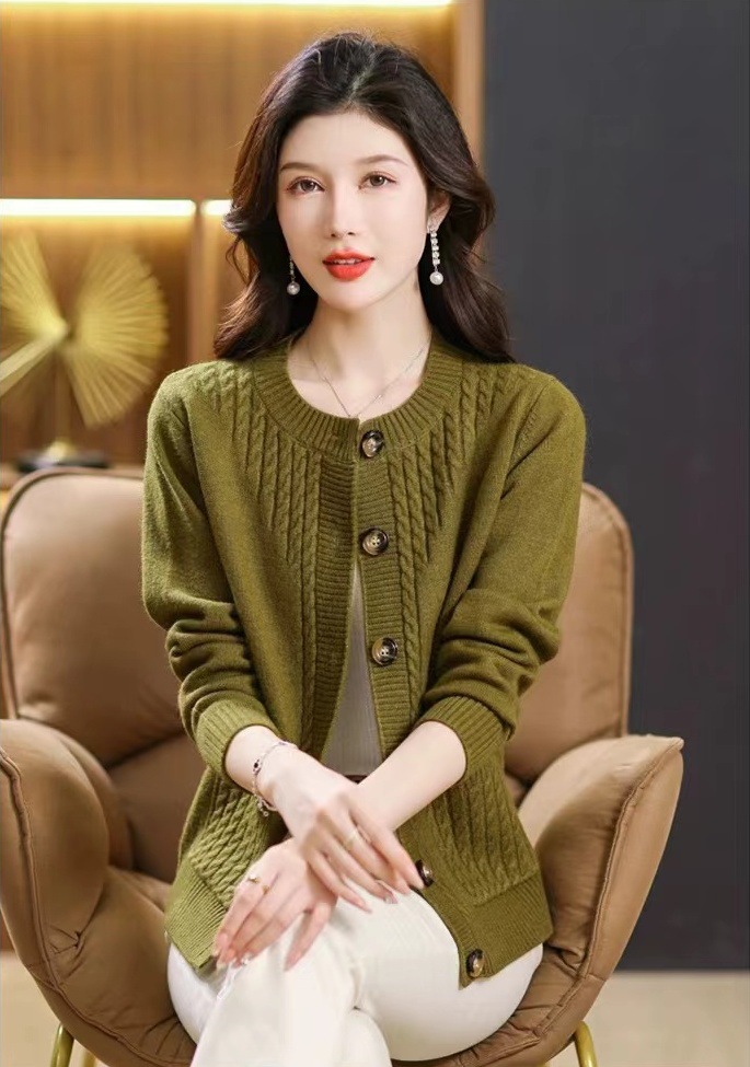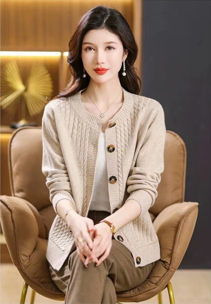 한국식 라운드 넥 트위스트 니트 카디건 여자 2024 가을 겨울 뉴 웨스턴 스타일 올매치 느슨한 긴팔 스웨터 재킷