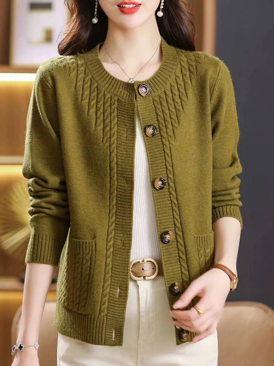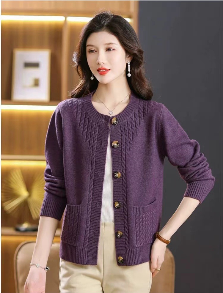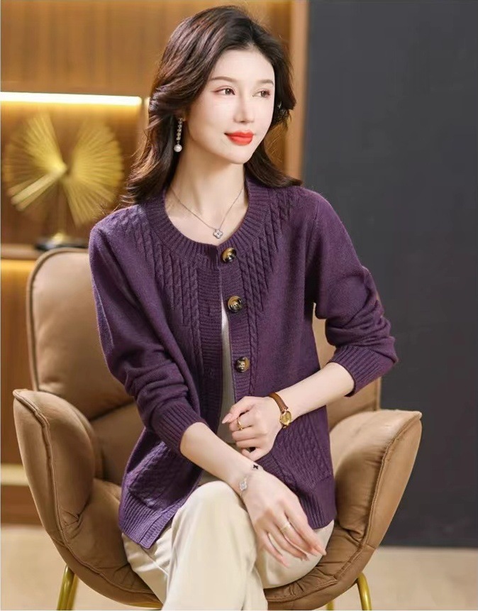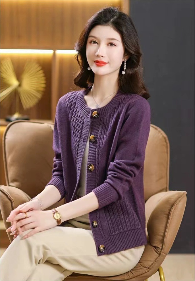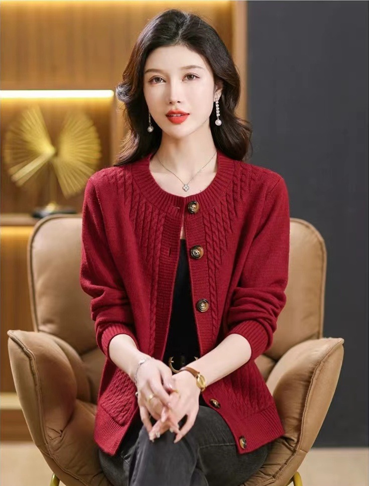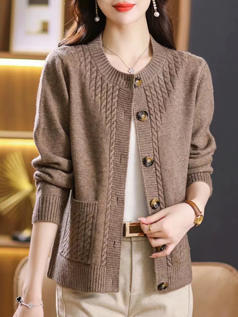 한국식 라운드 넥 트위스트 니트 카디건 여자 2024 가을 겨울 뉴 웨스턴 스타일 올매치 느슨한 긴팔 스웨터 재킷