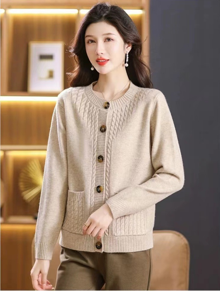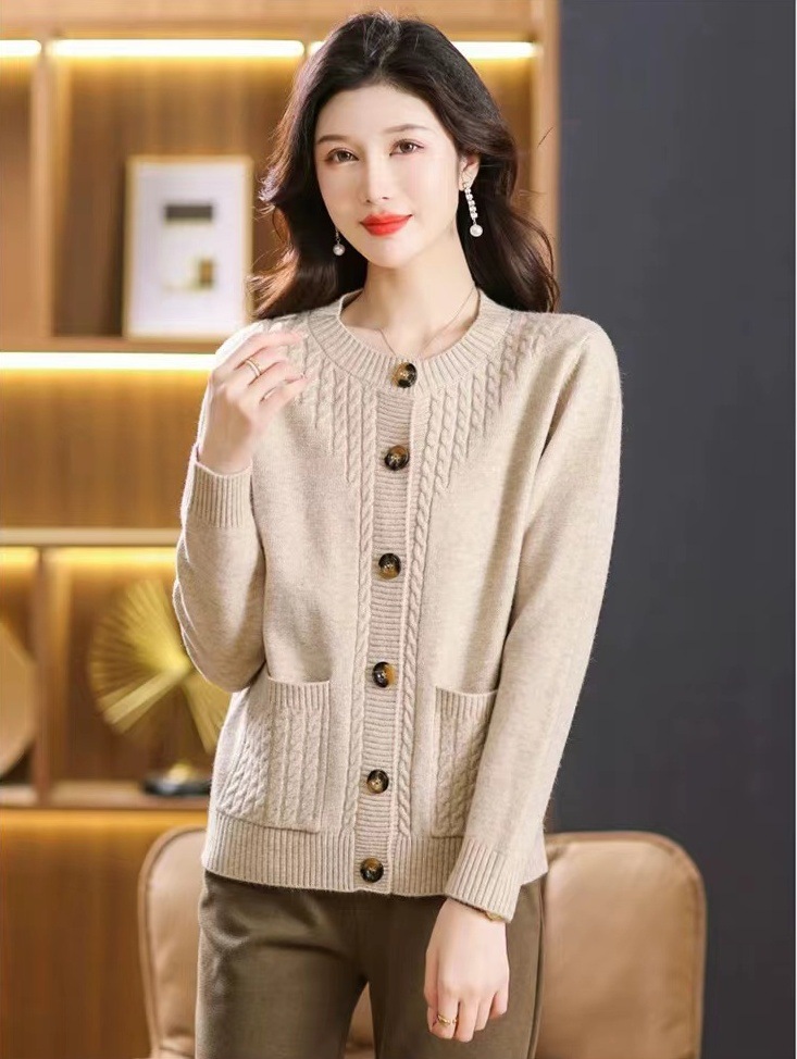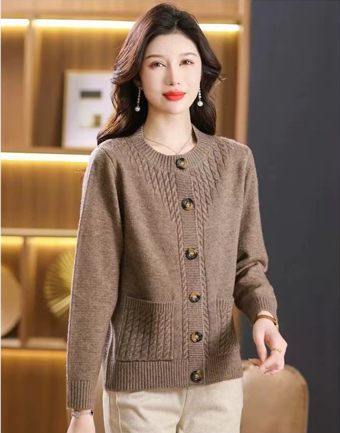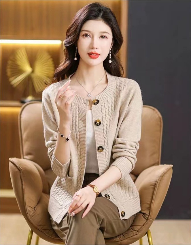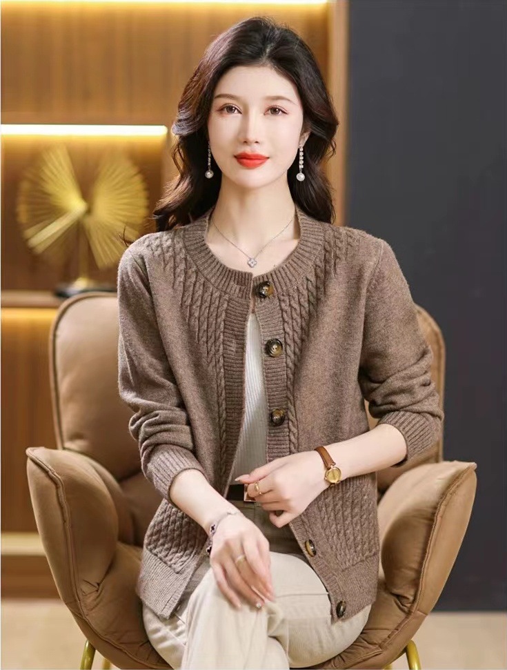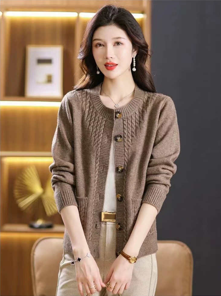 한국식 라운드 넥 트위스트 니트 카디건 여자 2024 가을 겨울 뉴 웨스턴 스타일 올매치 느슨한 긴팔 스웨터 재킷스토어 가기