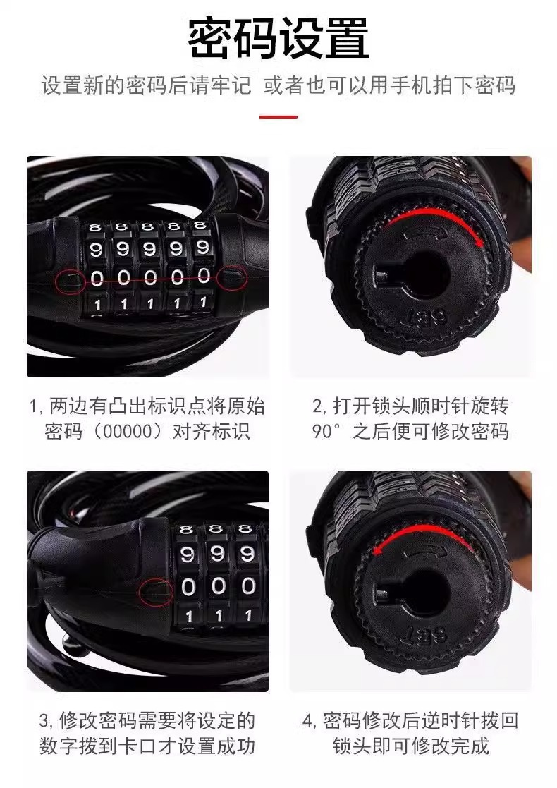 자전거 조합 잠금 고정 자전거 도난 방지 잠금 휴대용 산악 자전거 전기 자동차 잠금 체인 케이블 잠금 도매스토어 가기