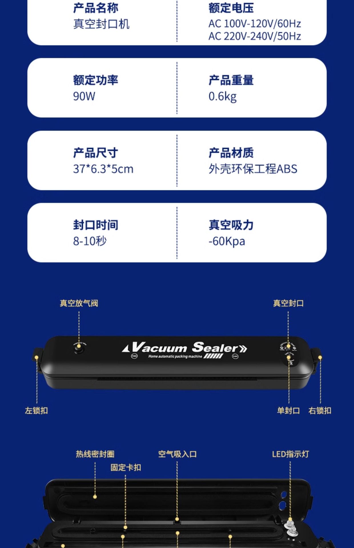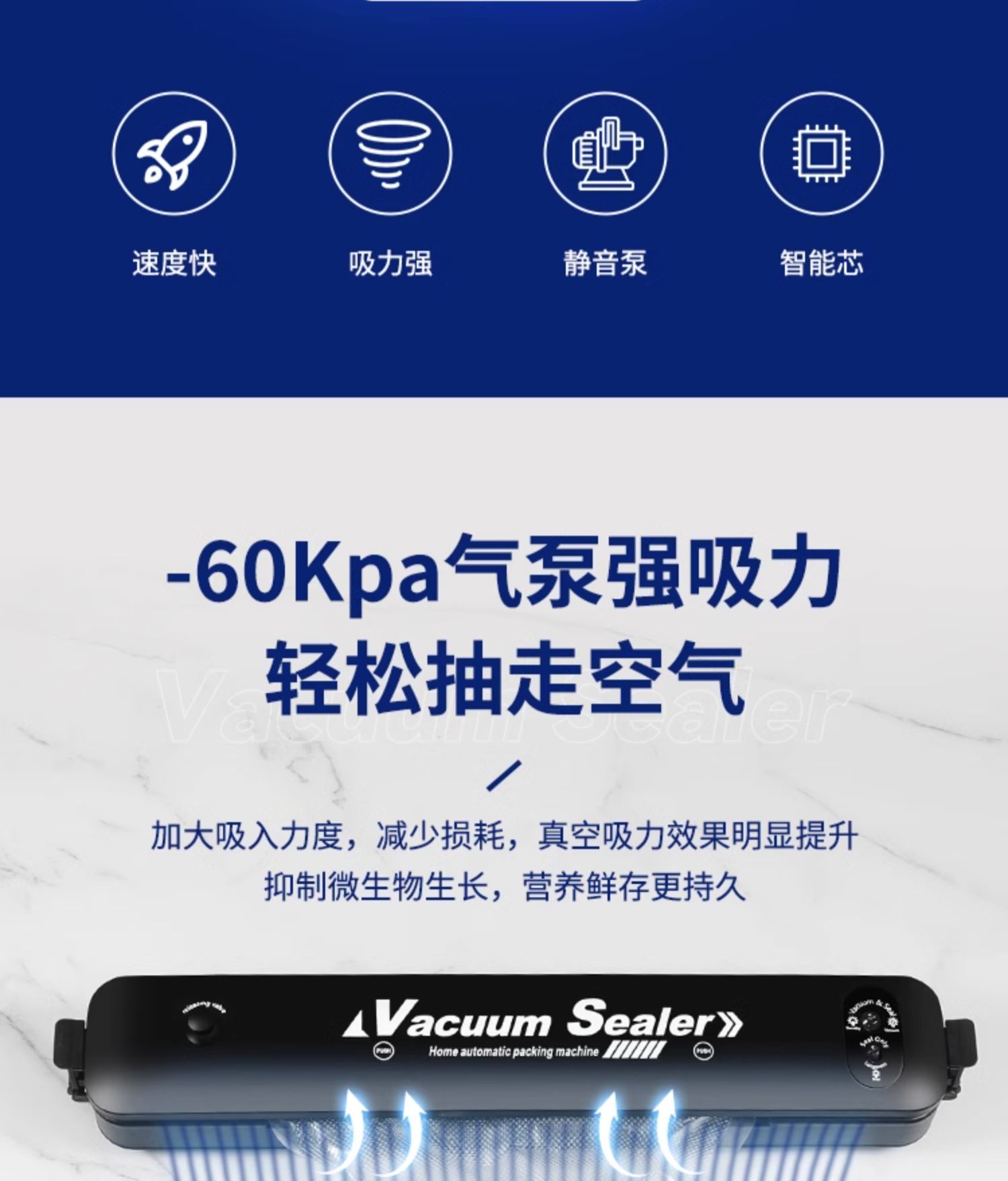 가정용 진공 밀봉 기계 자동 진공 작은 식품 밀봉 포장 건조하고 젖은 이중 사용 보존 유물 국경스토어 가기