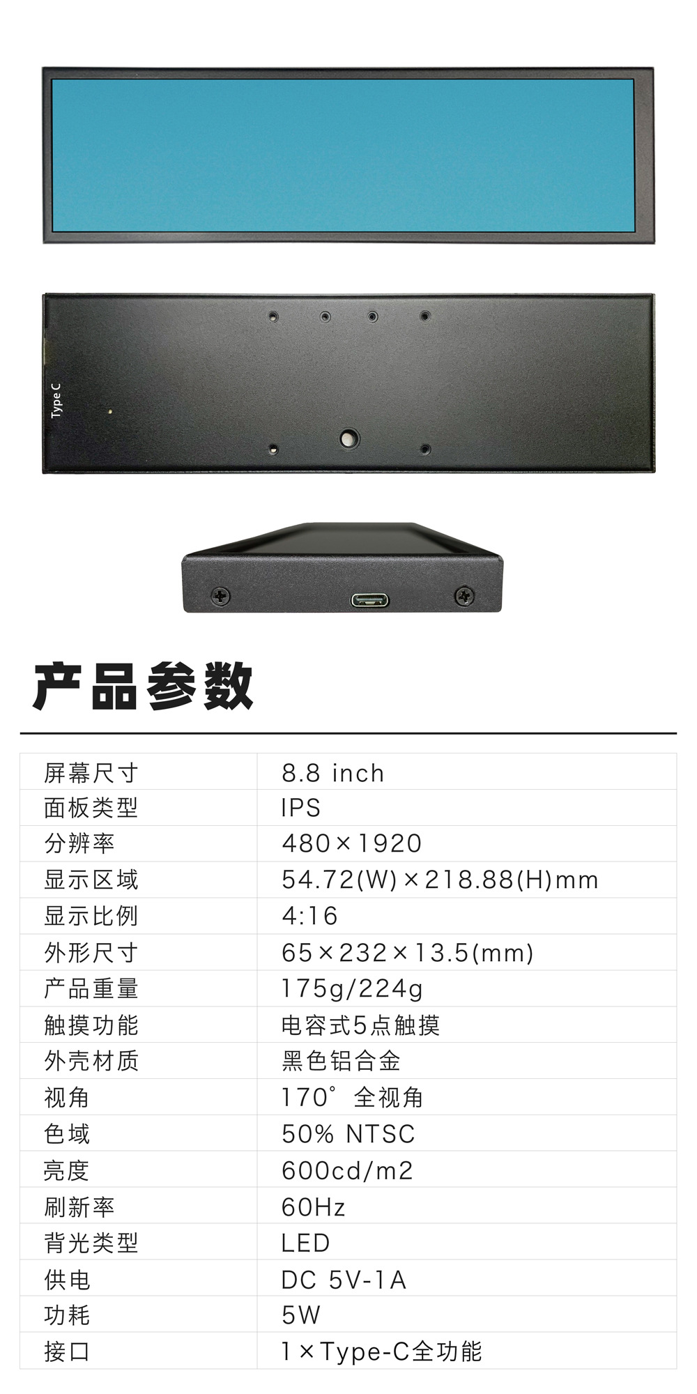 8.8 인치 긴 바 디스플레이 섀시 감지 휴대용 IPS HD 480x1920 디스플레이 아마존 핫 세일