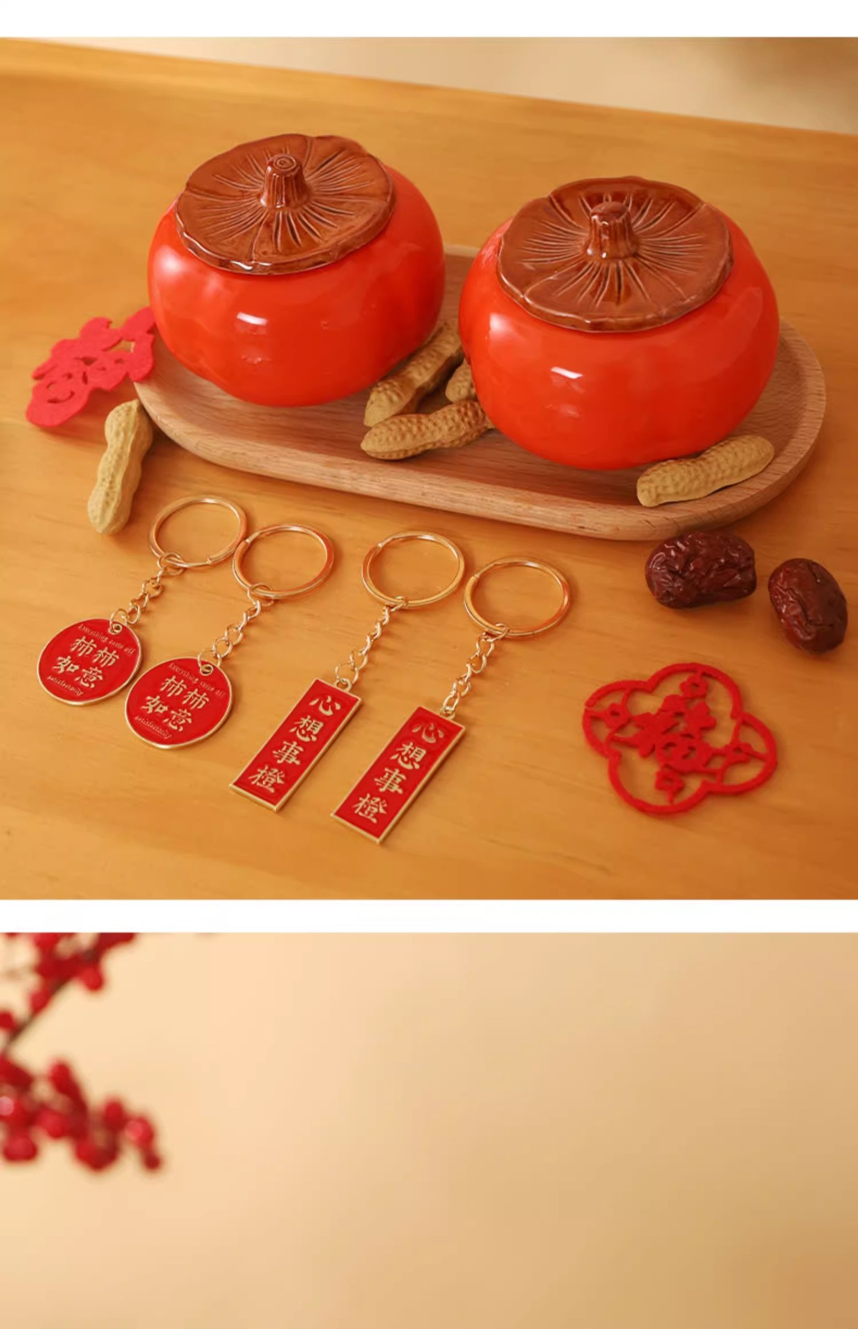 • 선물 상자 감 + 나무 트레이 + 보라색 점토 땅콩 + 감 Ruyi 펜던트