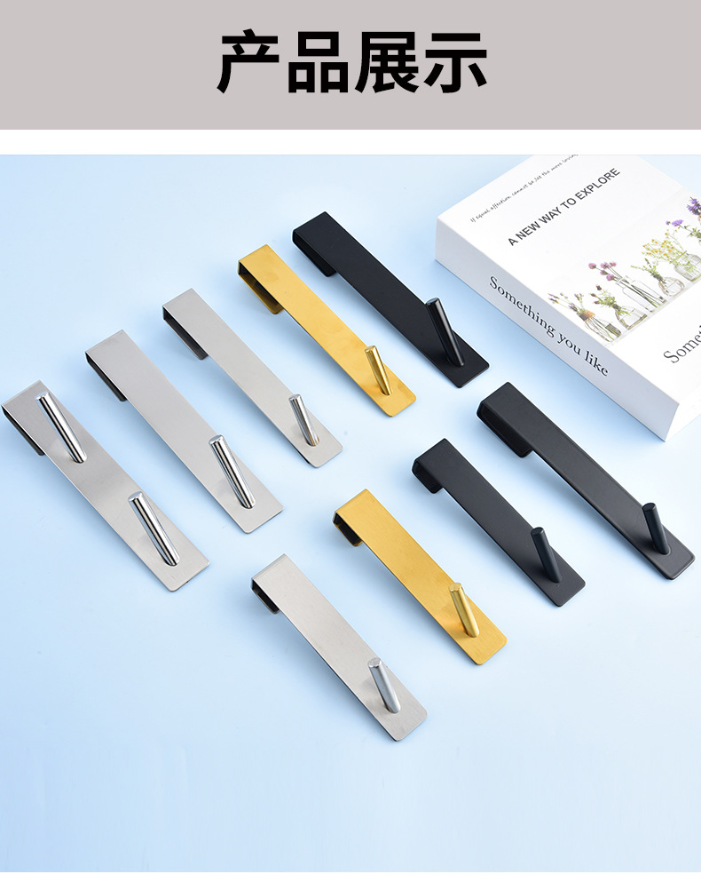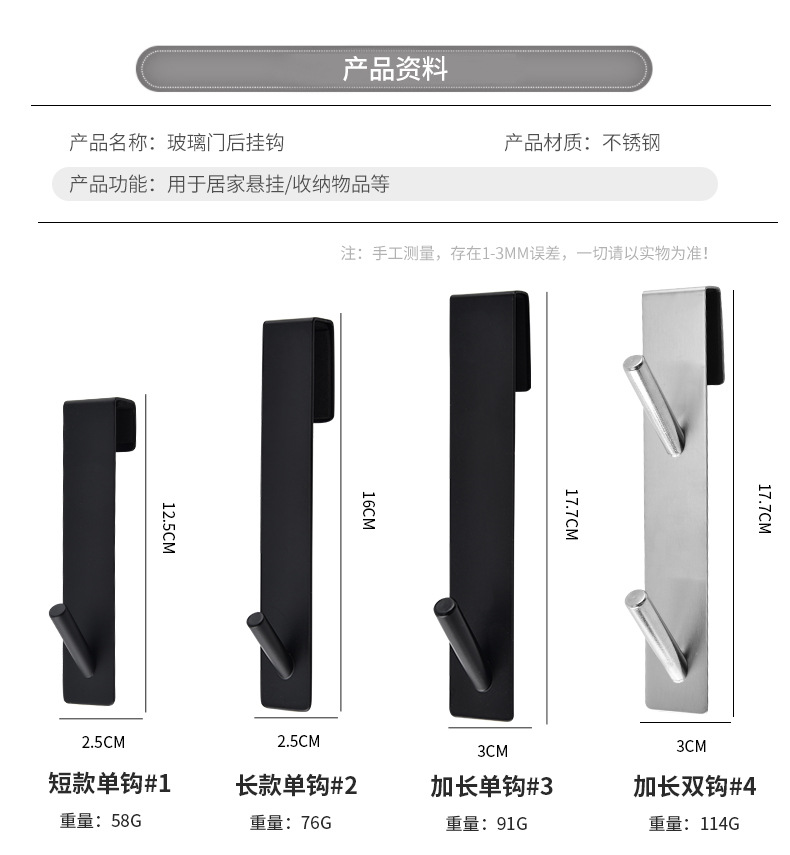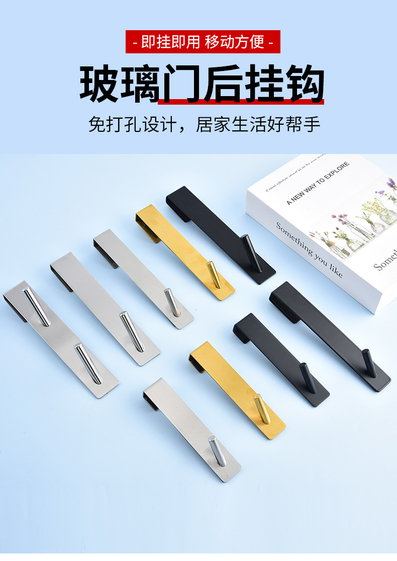 재고 스테인레스 스틸 욕실 유리 도어 후크 다시 매달려 더블 후크 욕실 타월 교수형 의류 비 천공 금속 의류 후크