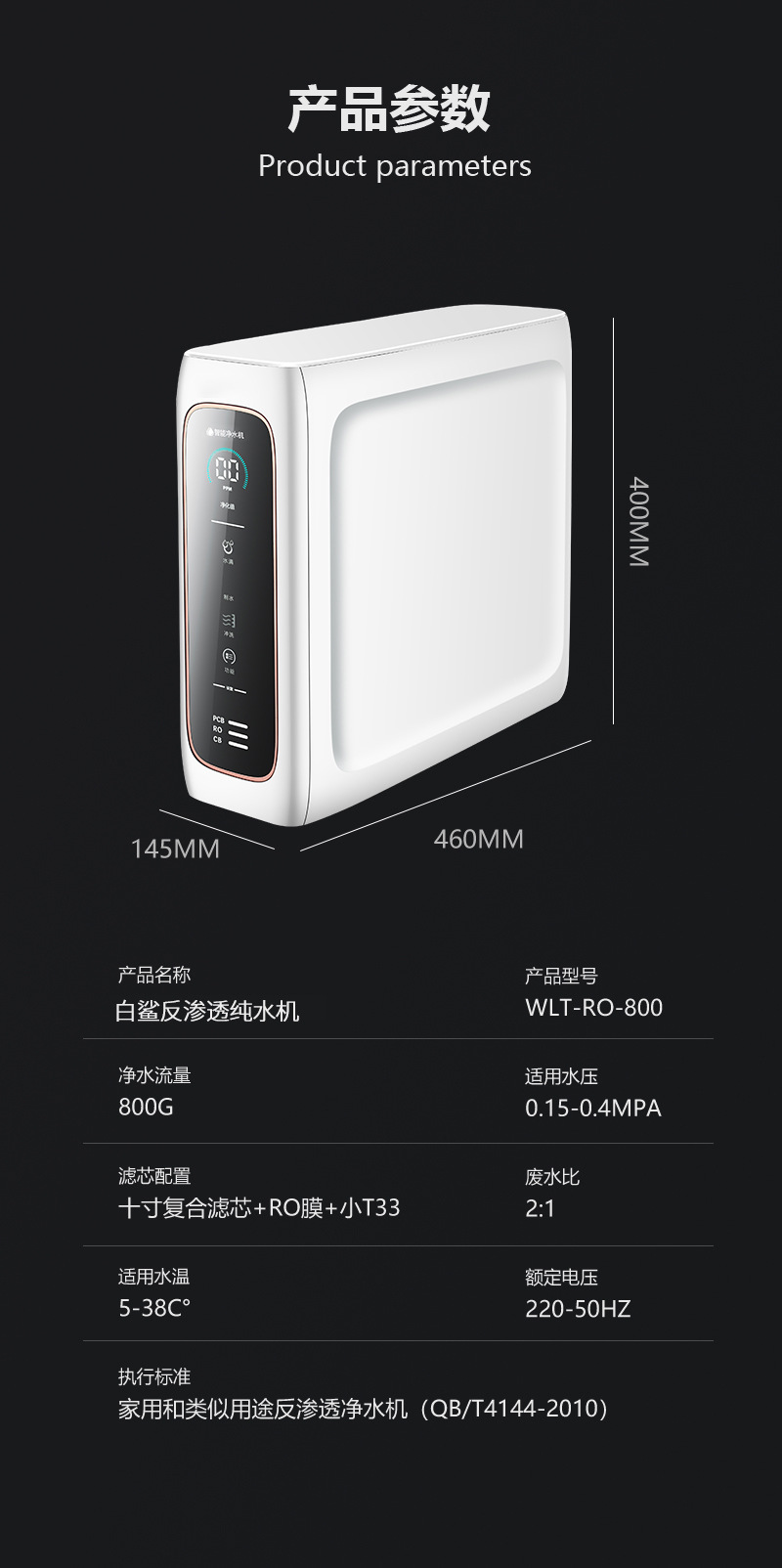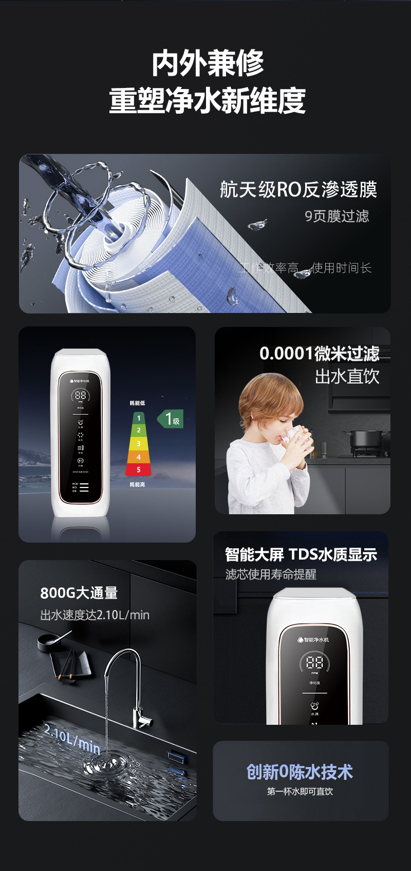 800G 큰 흐름 정수기 가정용 주방 직접 마시는 RO 역 삼투압 정수기 수돗물 필터 정수기