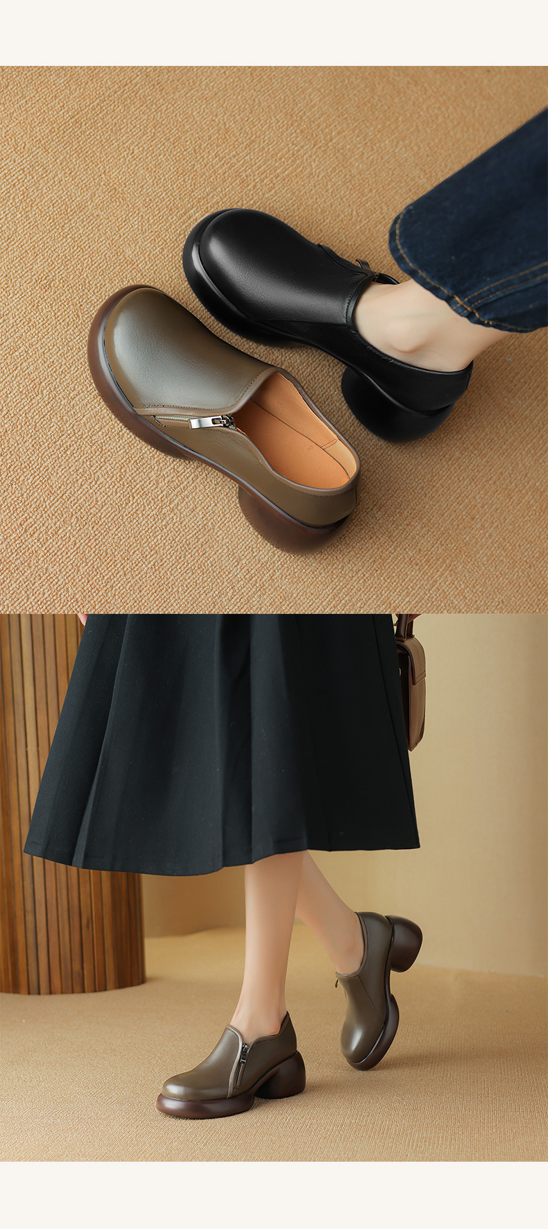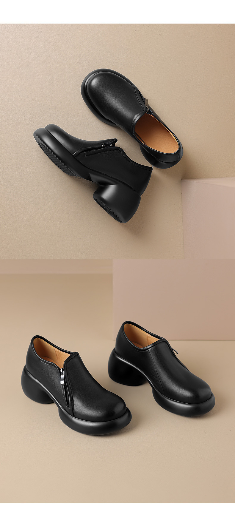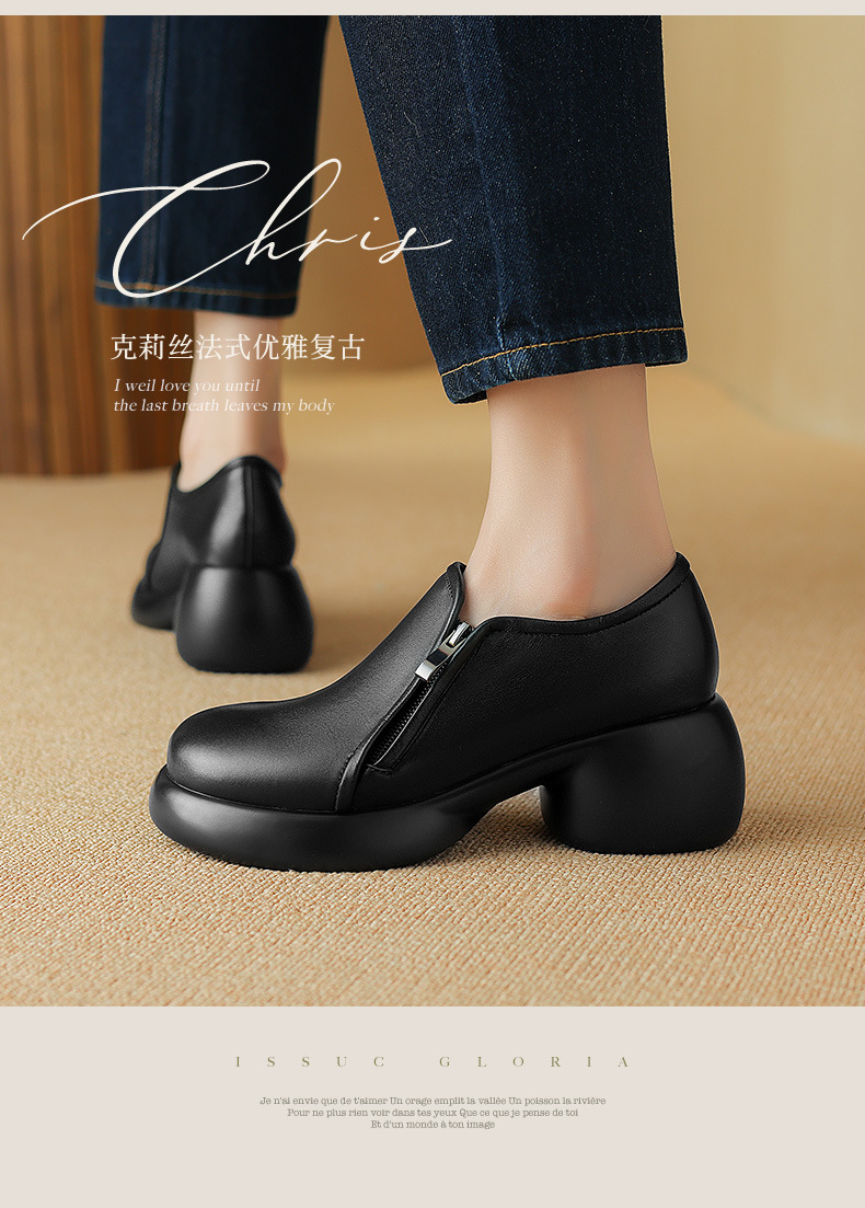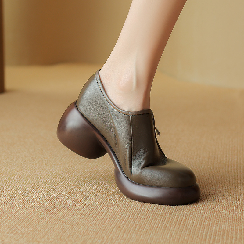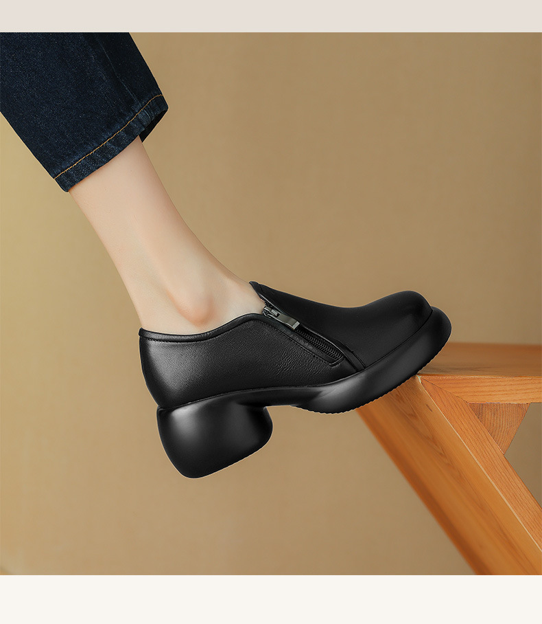 2024 양가죽 부드러운 밑창 로퍼 여성 두꺼운 밑창 하이힐 플랫폼 신발 봄과 가을 작은 가죽 신발 여성 정품 가죽 깊은 입 싱글 레이어 신발스토어 가기