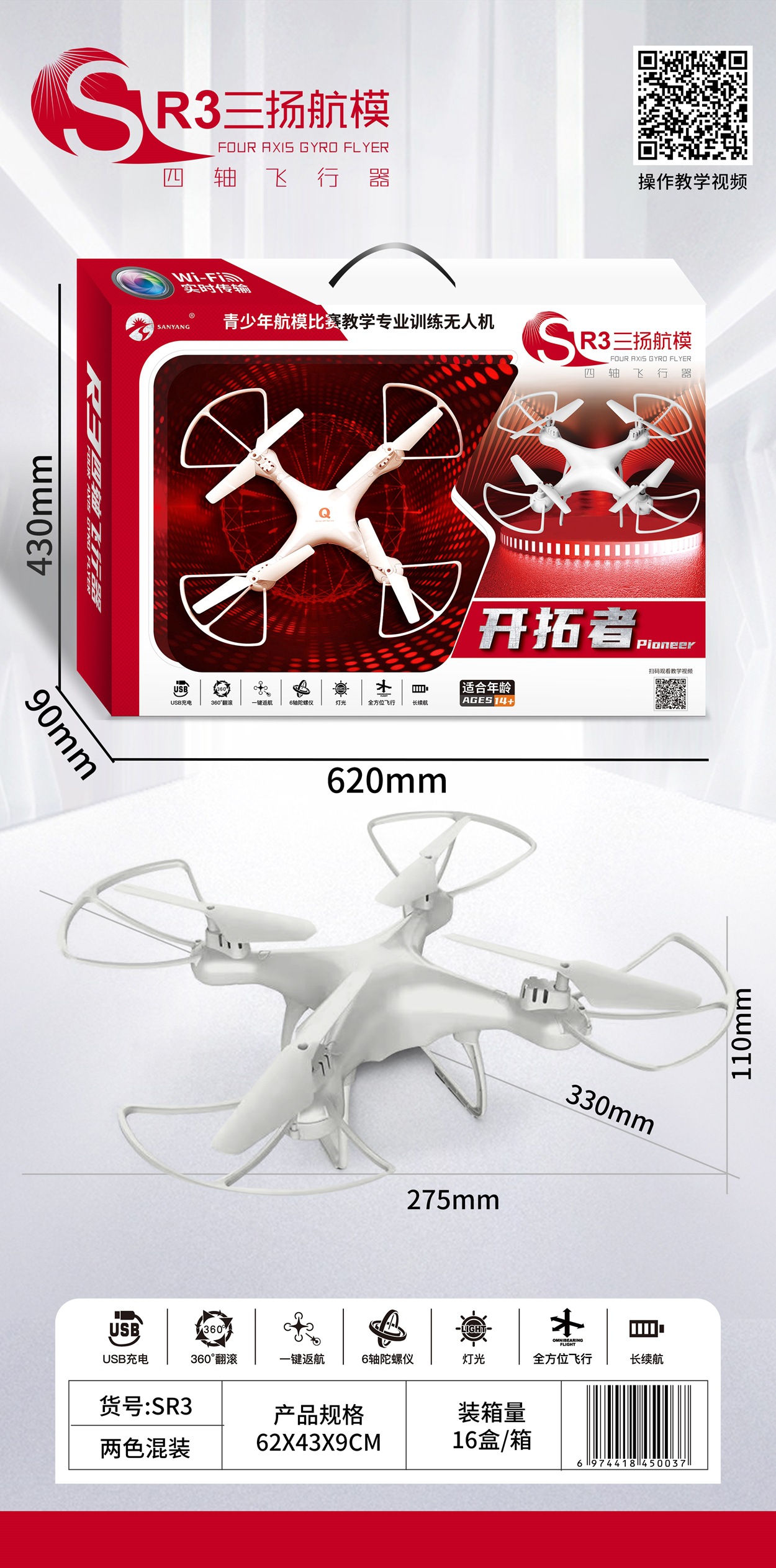 • SR6 고정 높이 드론(주황색 및 빨간색 혼합)