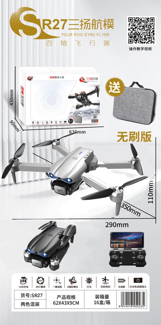 • SR27 브러시리스 광학 흐름 포지셔닝 + 전자적으로 조정 가능한 듀얼 카메라 드론(검정색 및 회색 혼합)