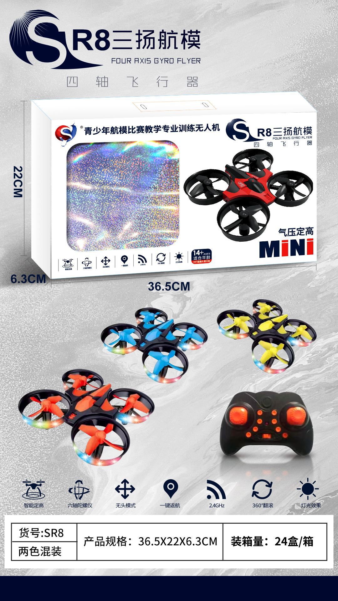 • SR8 고정 높이 드론(파란색, 노란색, 빨간색 혼합)