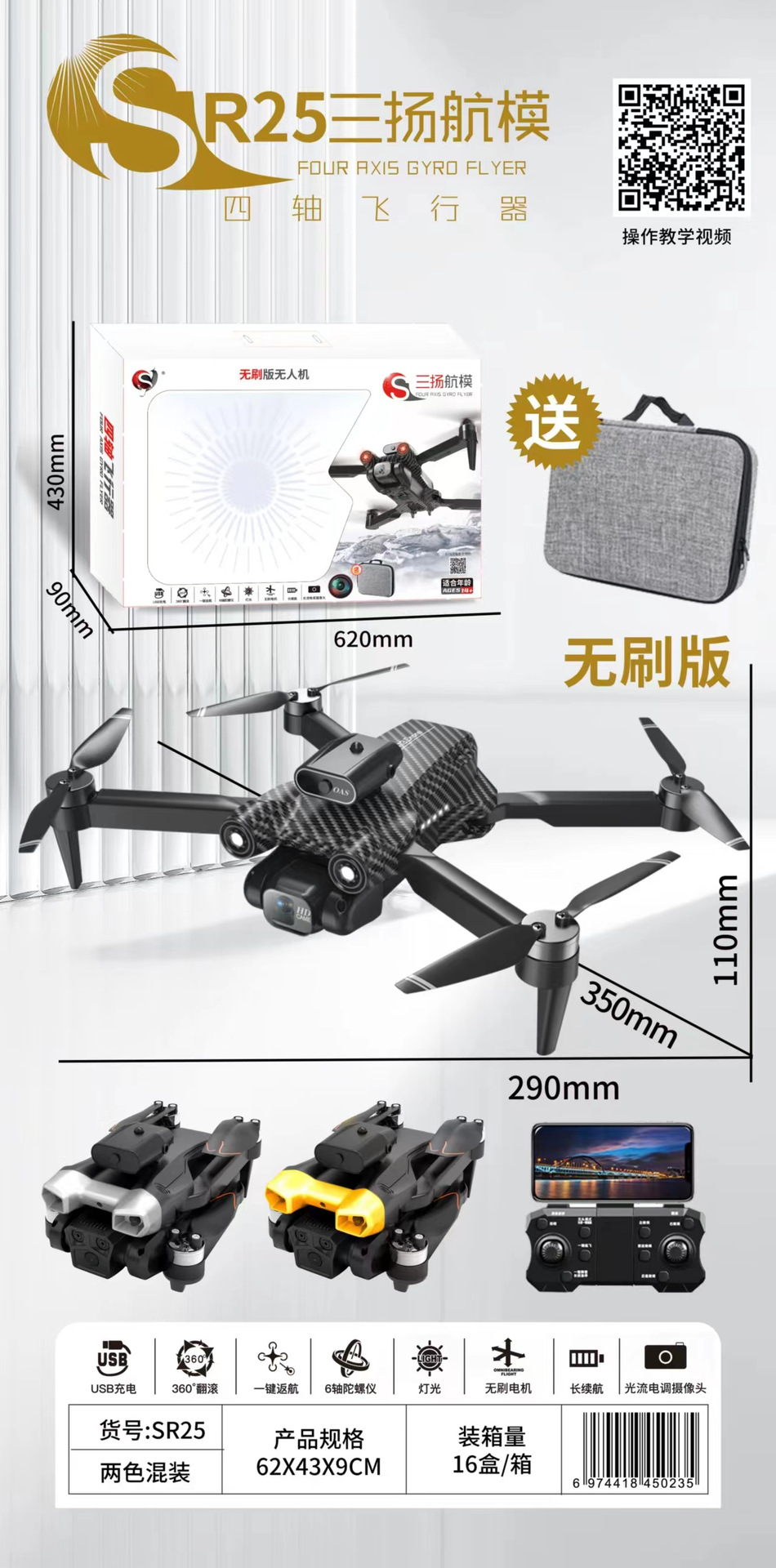 • SR25 브러시리스 광학 흐름 포지셔닝 + 전자 제어 듀얼 카메라 드론(탄소 섬유 회색 혼합)