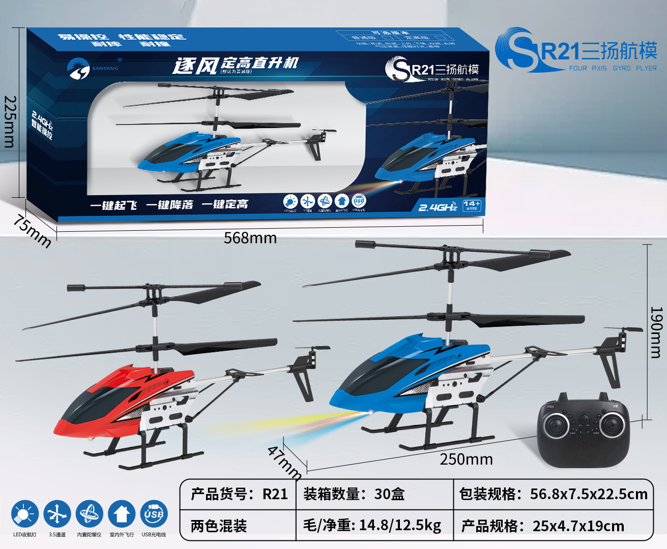 • SR21 고정 높이 헬리콥터(파란색과 빨간색 혼합)