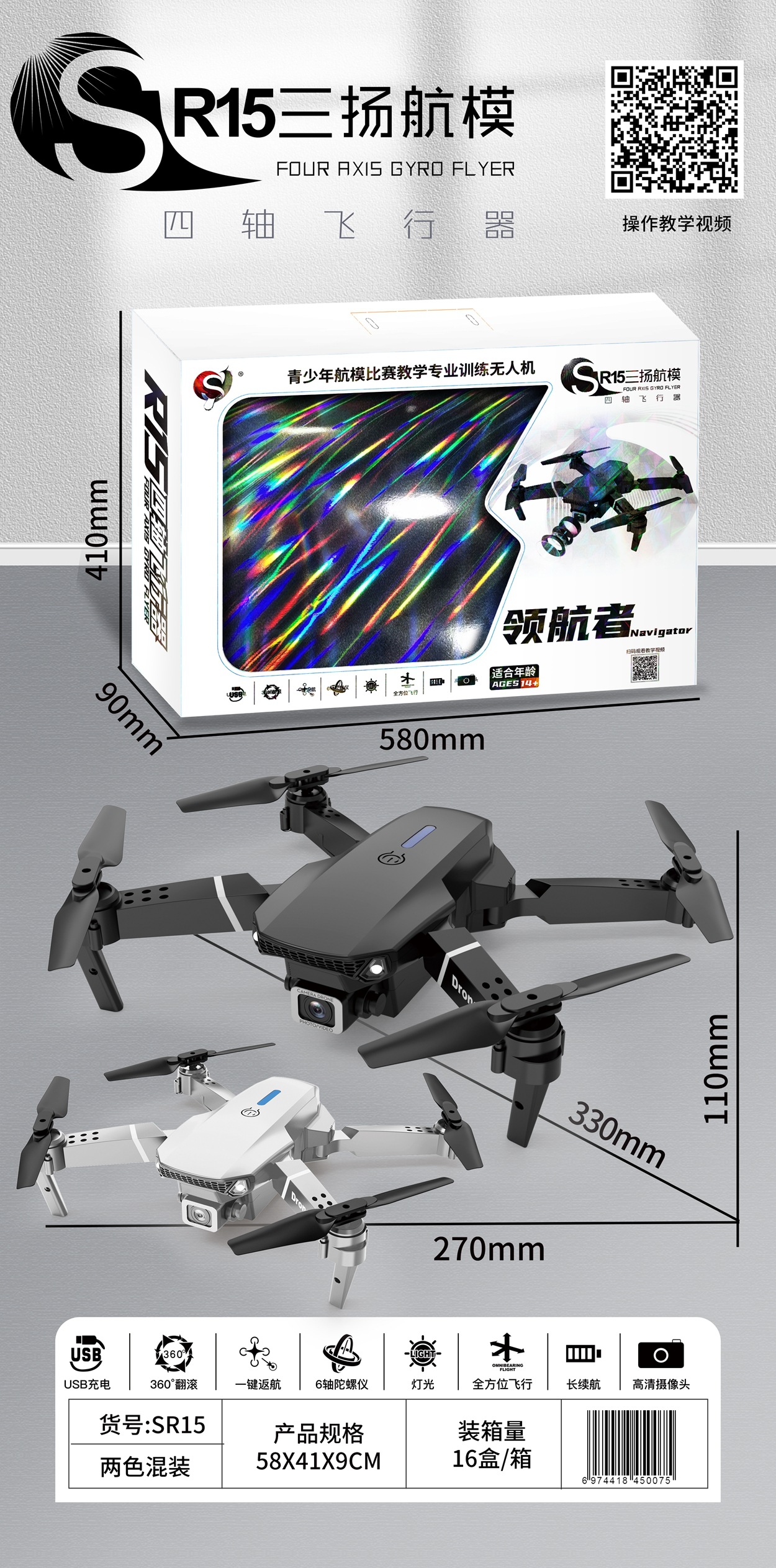 • SR15 듀얼 카메라 드론(검정색과 회색 혼합)