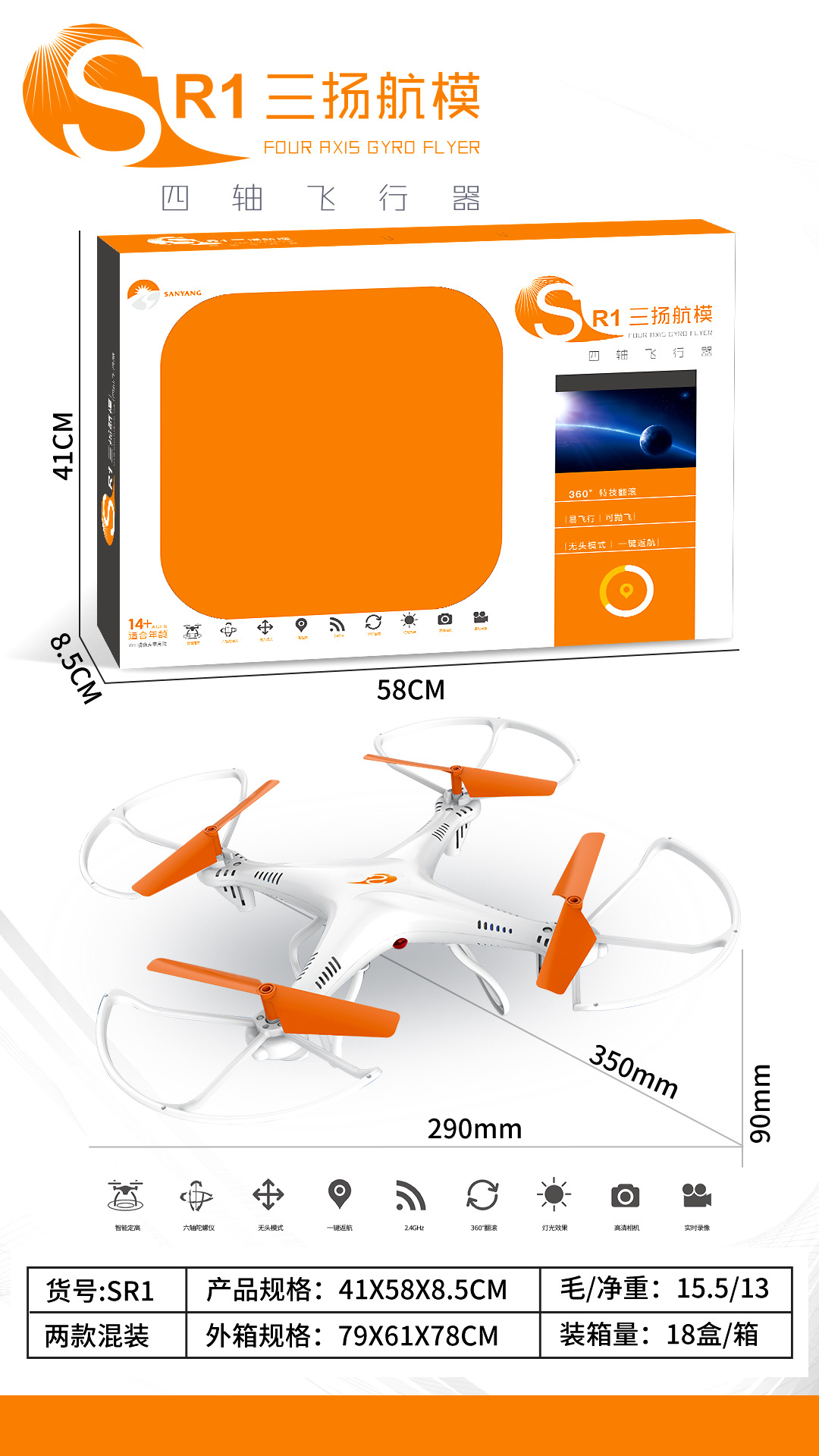 • SR1 고정 높이 드론(파란색과 주황색 혼합)