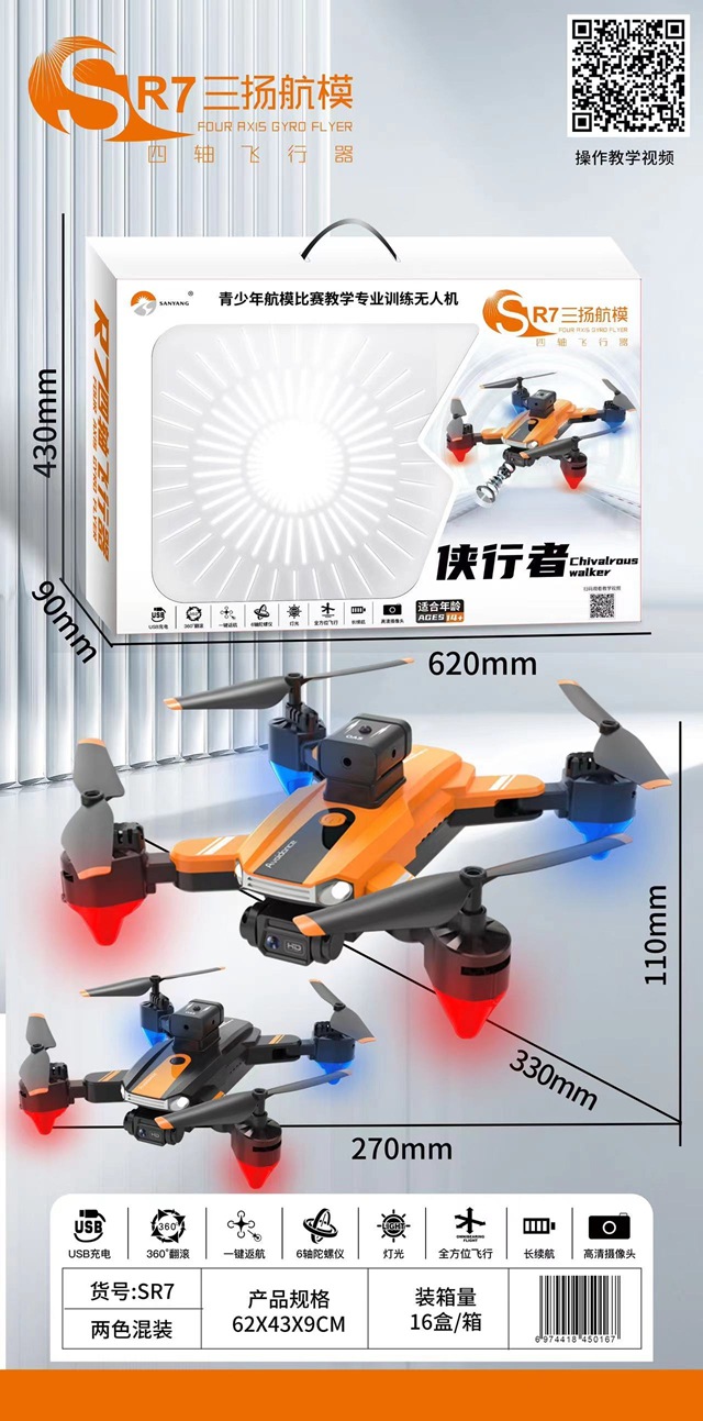 • SR7 광학 흐름 포지셔닝 + 전자적으로 조정 가능한 듀얼 카메라 드론(검은색과 주황색 혼합)