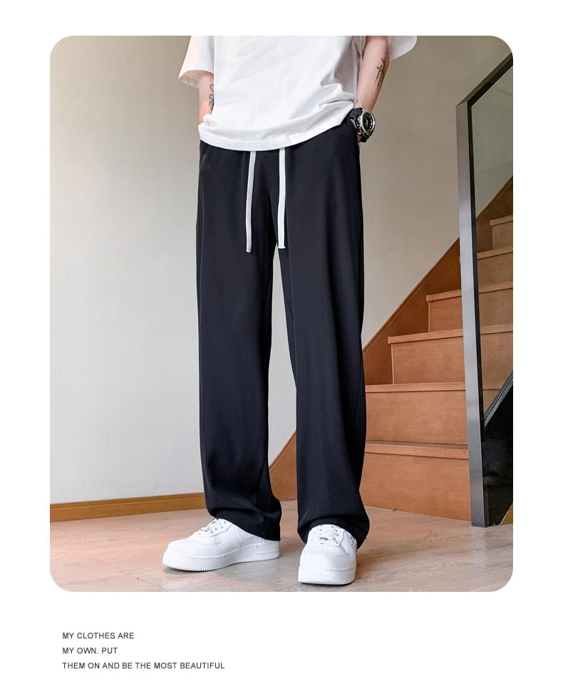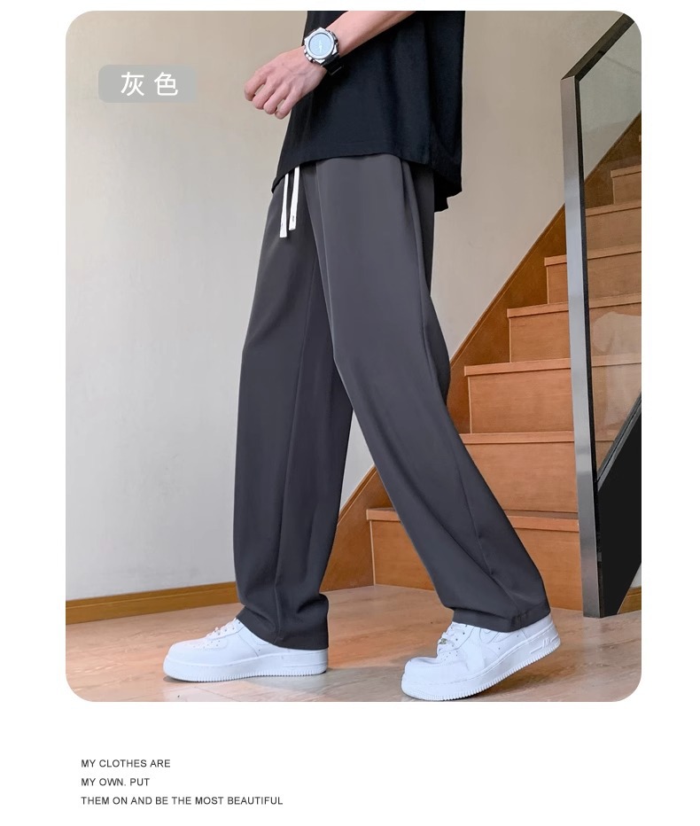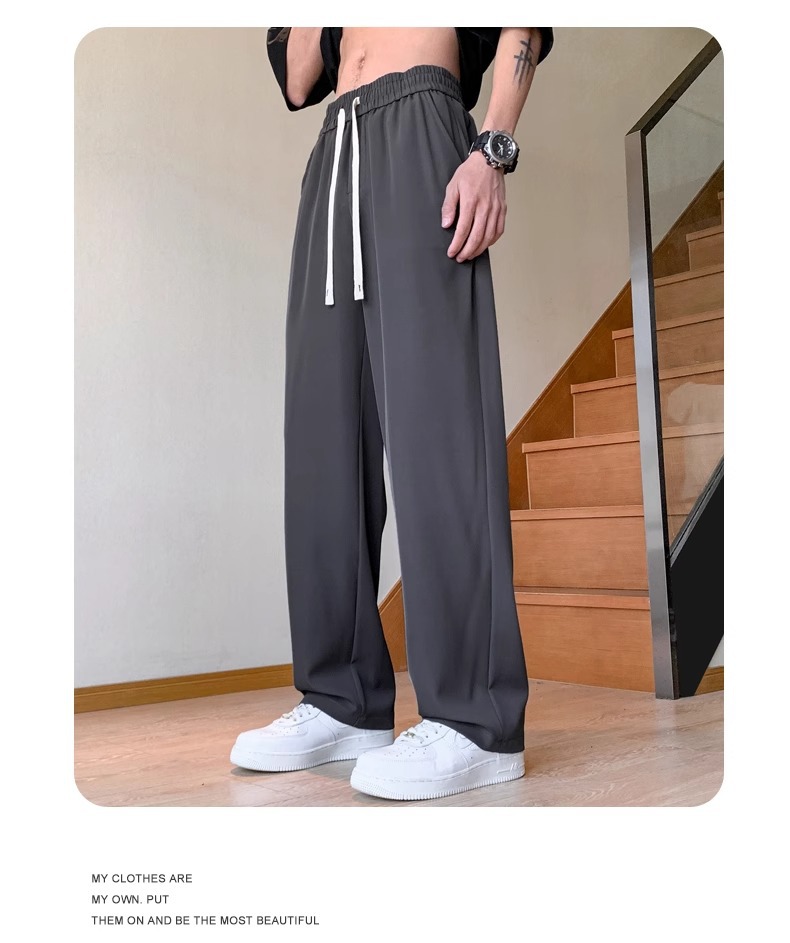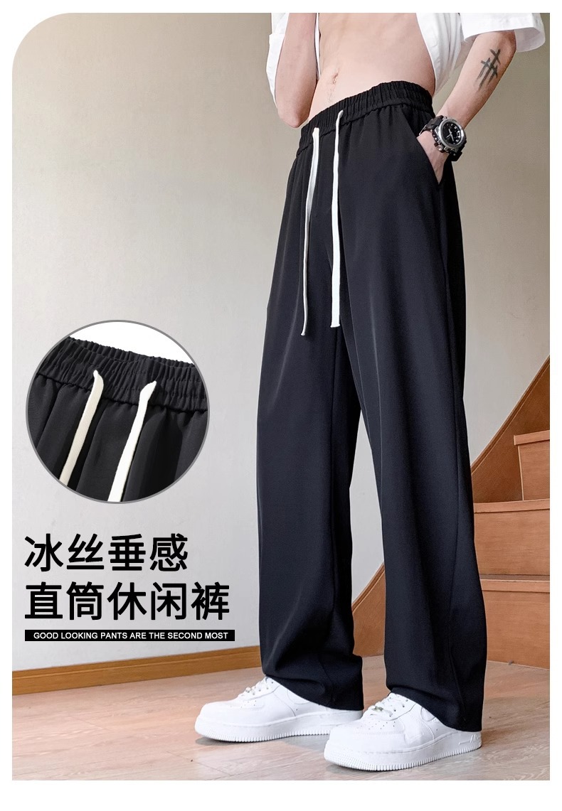 남자 여름 얇은 2024 바지 높은 탄성 아이스 실크 쿨 느슨한 스트레이트 스포츠 선 스크린 캐주얼 바지