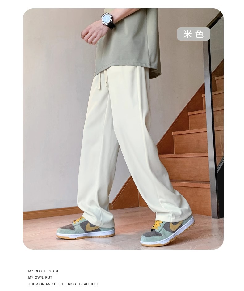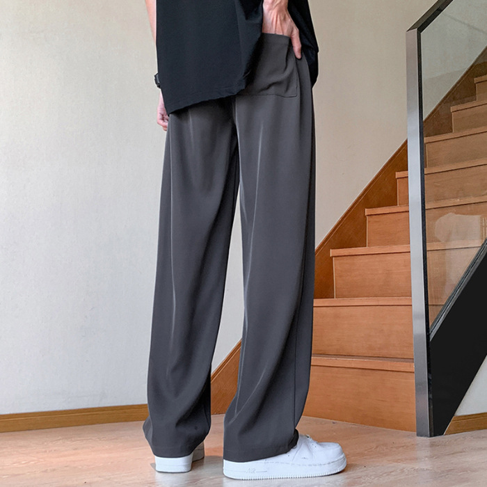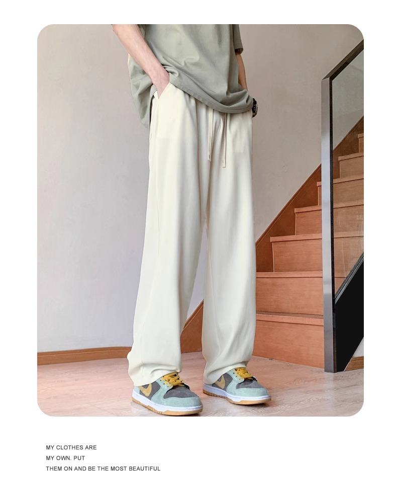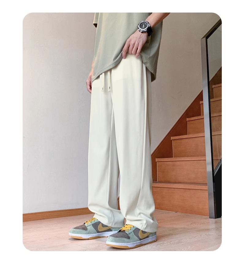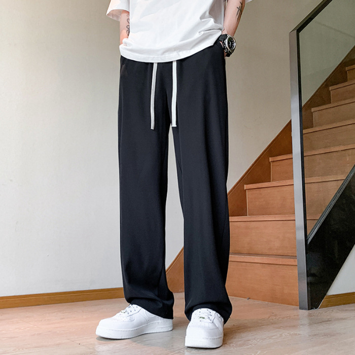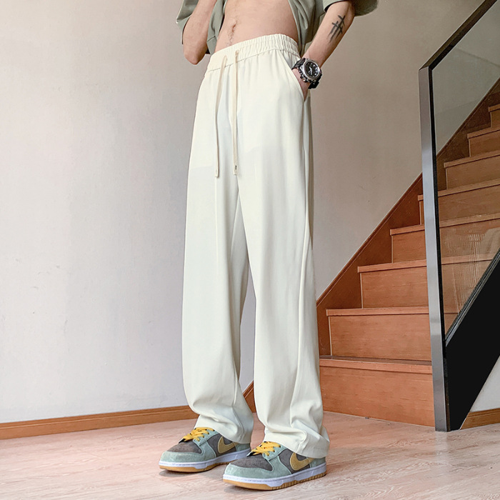 남자 여름 얇은 2024 바지 높은 탄성 아이스 실크 쿨 느슨한 스트레이트 스포츠 선 스크린 캐주얼 바지