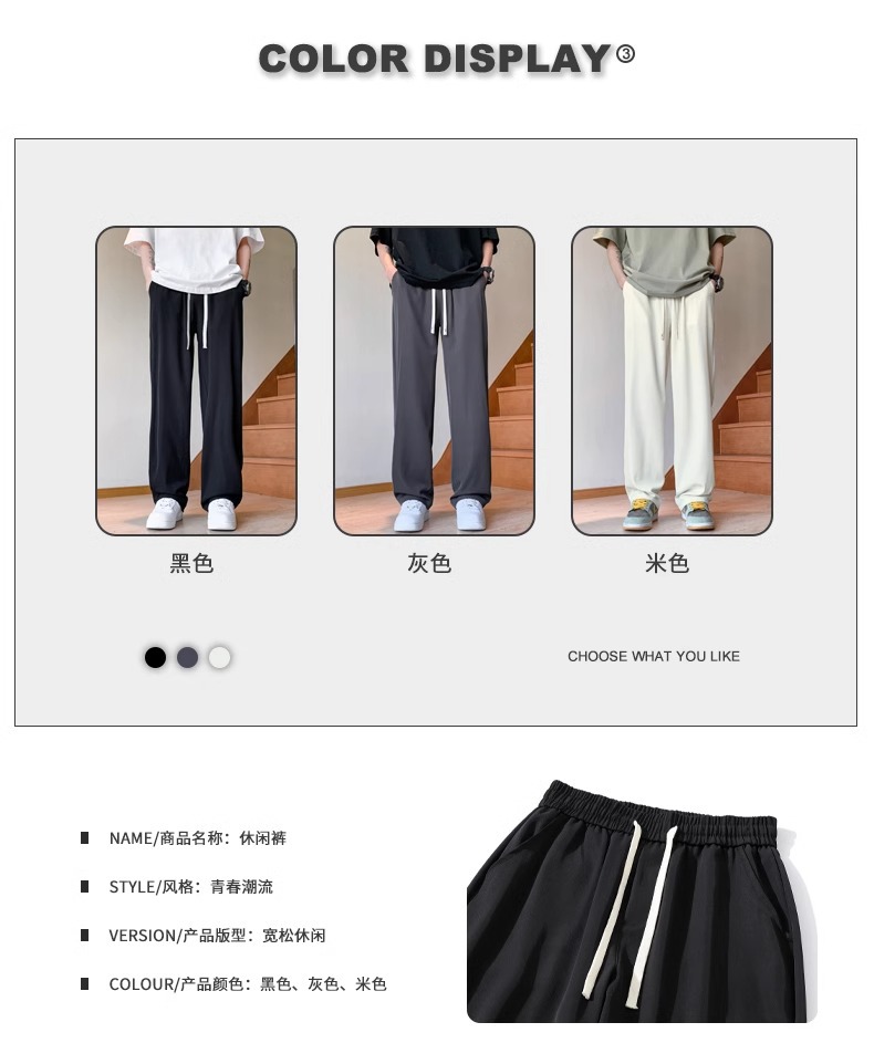 남자 여름 얇은 2024 바지 높은 탄성 아이스 실크 쿨 느슨한 스트레이트 스포츠 선 스크린 캐주얼 바지스토어 가기