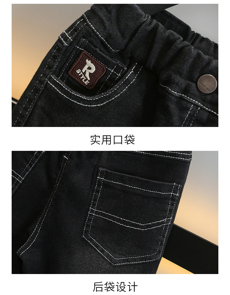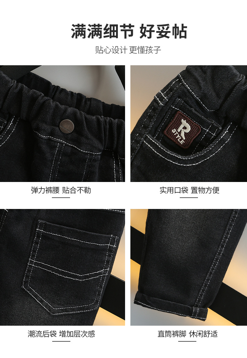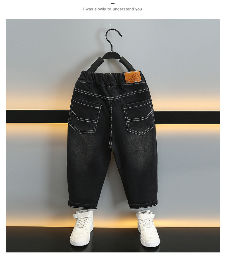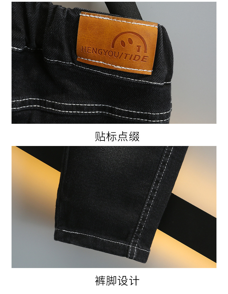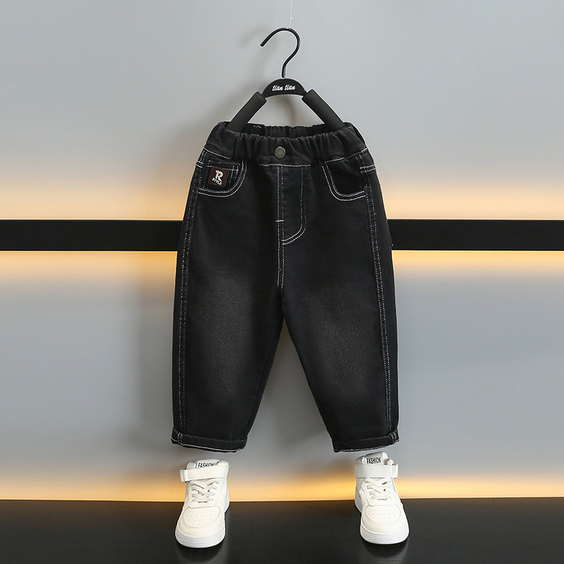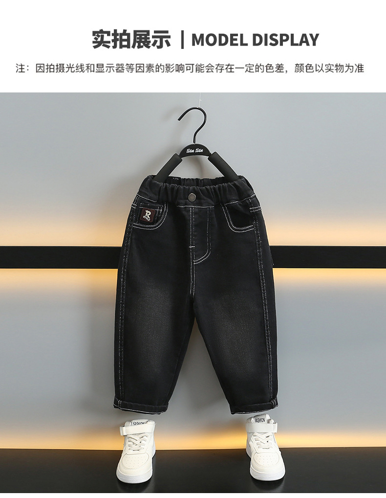 대외 무역 아동복 소년 이중선 라벨링 청바지 2024 가을 중소형 어린이 느슨한 캐주얼 바지 유행 바지스토어 가기