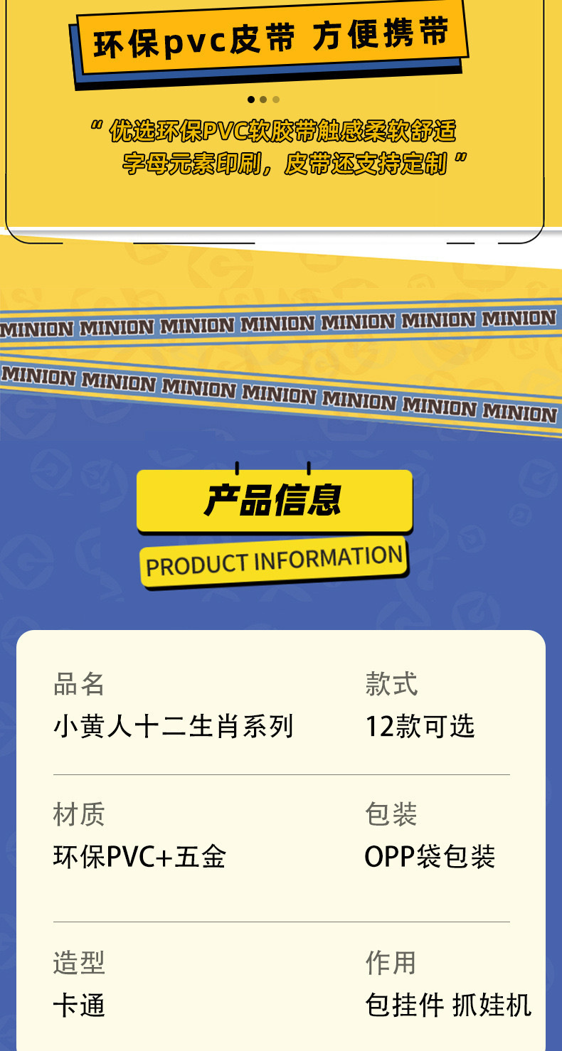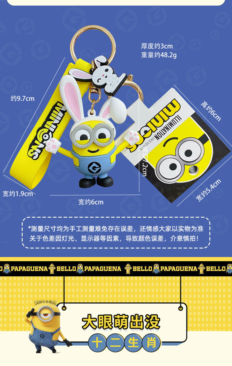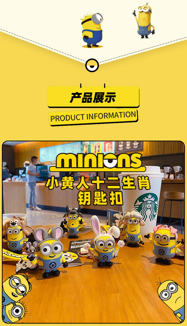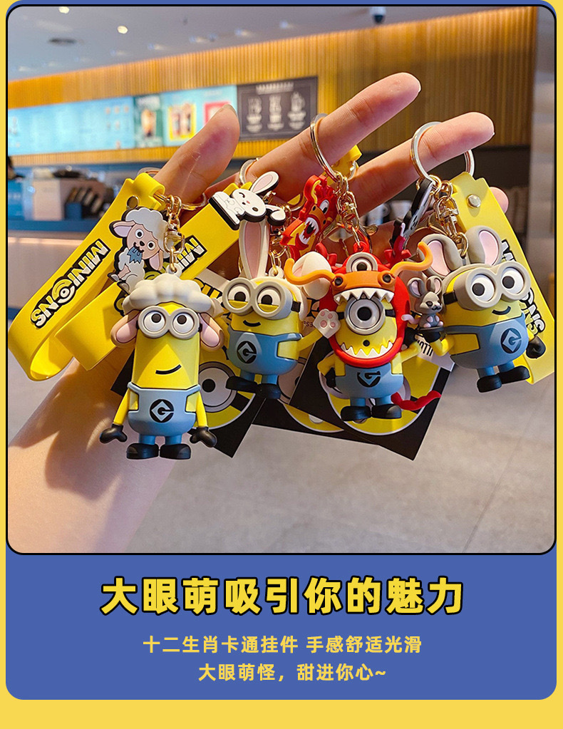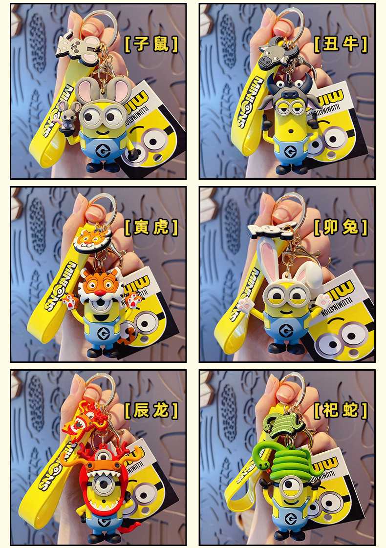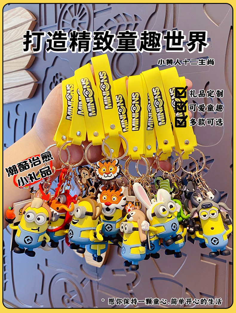 국경 간 조디악 미니언 키 체인 만화 애니메이션 인형 키 체인 인형 기계 펜던트 선물 도매스토어 가기