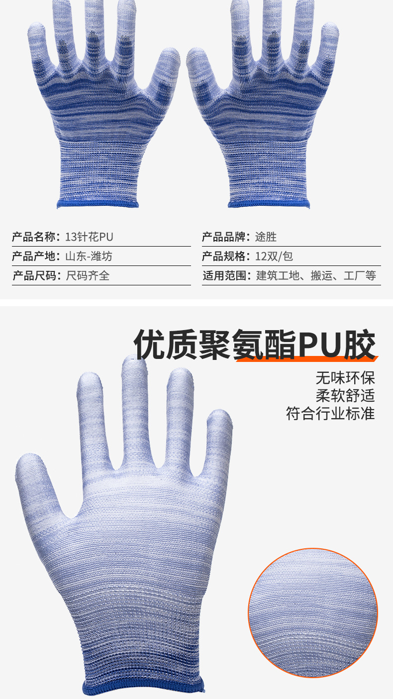 13 핀 원예 클래스 pu 코팅 장갑 미끄럼 방지 내마모성 손 손질 장미 가시 노동 장갑