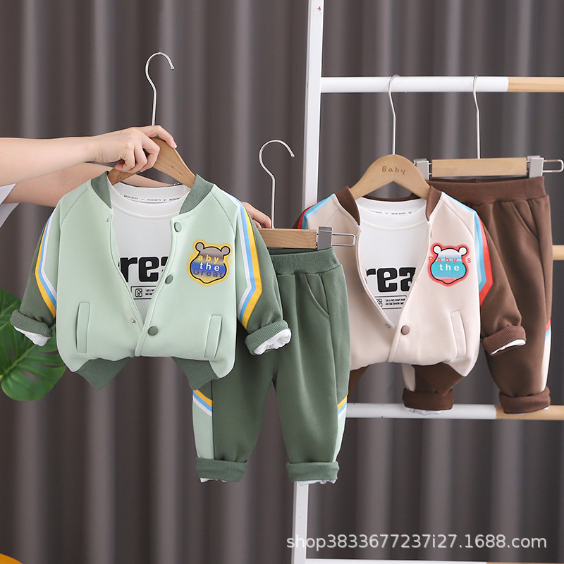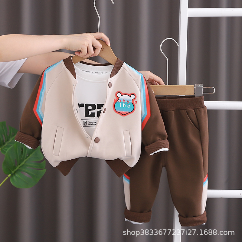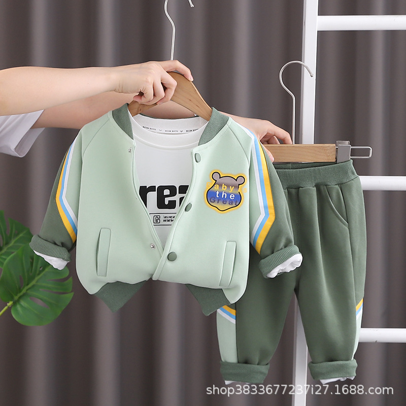 어린이 야구 세트 세트 아기 소년의 새로운 가을 투피스 세트 잘 생긴 소년의 서양식 봄과 가을 코트 버튼 팩스토어 가기