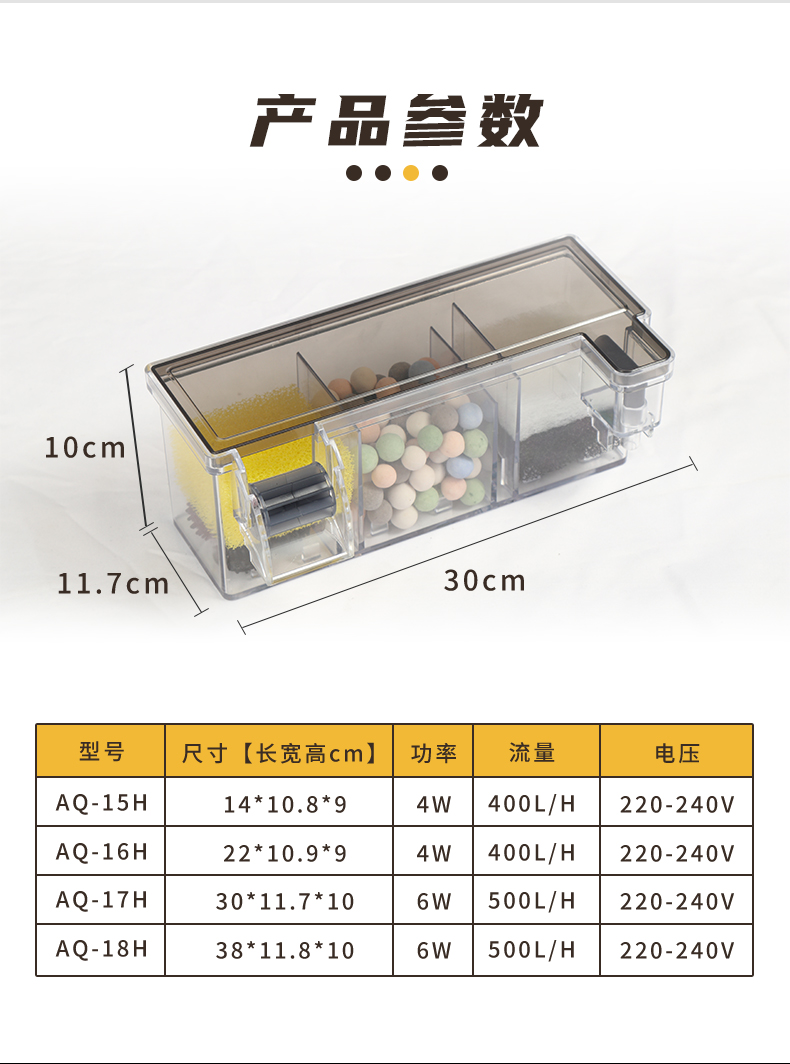 • AQ-18H 5그리드 필터에는 필터솜 + 워터펌프가 포함되어 있습니다.