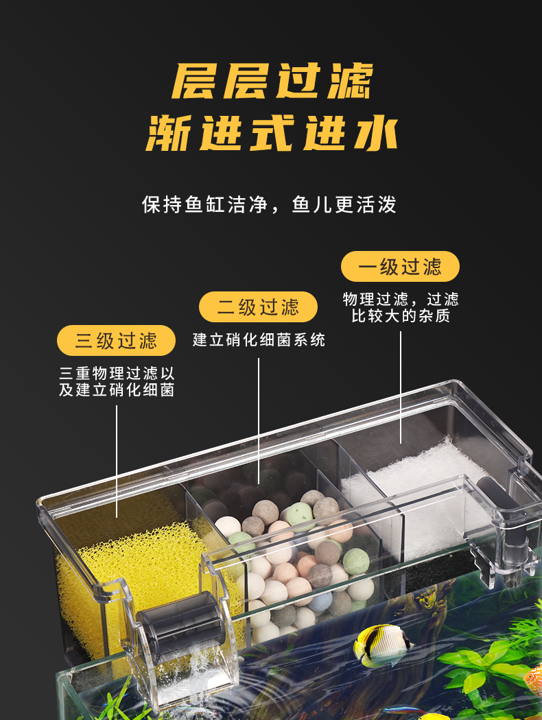어항 거북이 탱크 필터 상자 3 대 1 산소 필터 상단 필터 벽 걸이 드립 박스 내장 상단 정수기스토어 가기