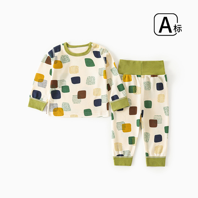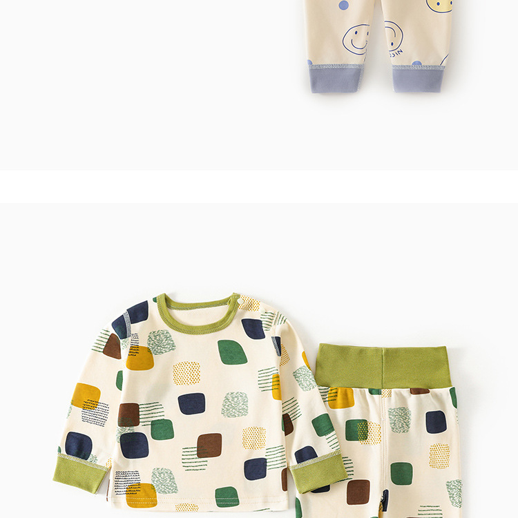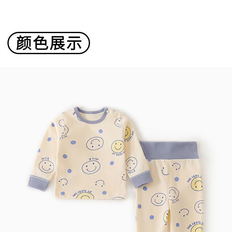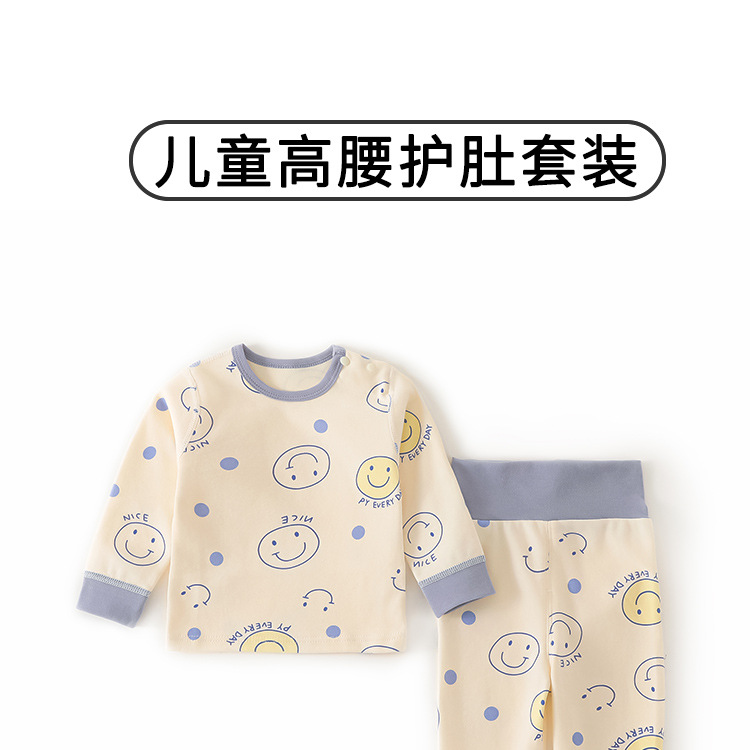 아기의 순면 뼈없는 높은 허리 배꼽 보호자 가을과 겨울 가을 옷과 바지 집에서 잠자는 소년과 소녀를위한 아기의 열 속옷을 세트