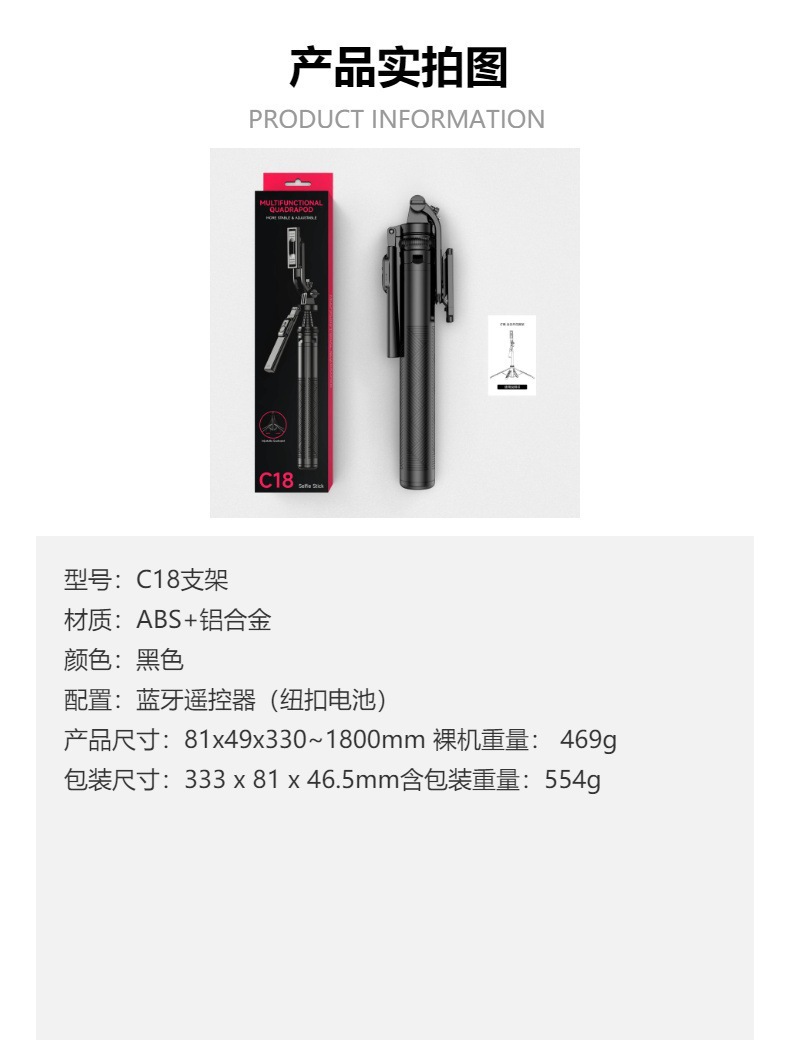 C18 셀카봉 흔들림 방지 핸드헬드 스태빌라이저 바닥 라이브 방송 스탠드 4각형 휴대폰 스탠드 블루투스 리모컨 세로 촬영