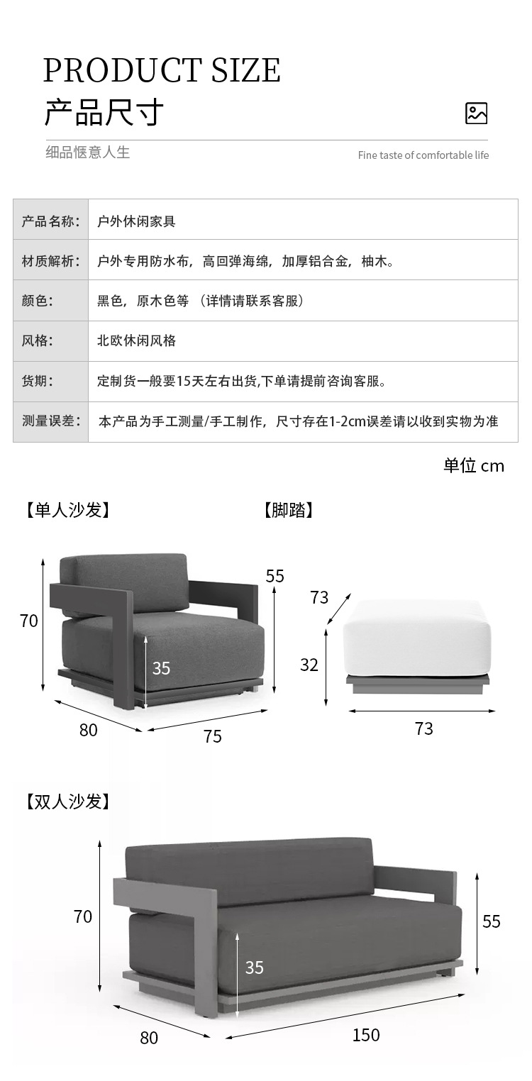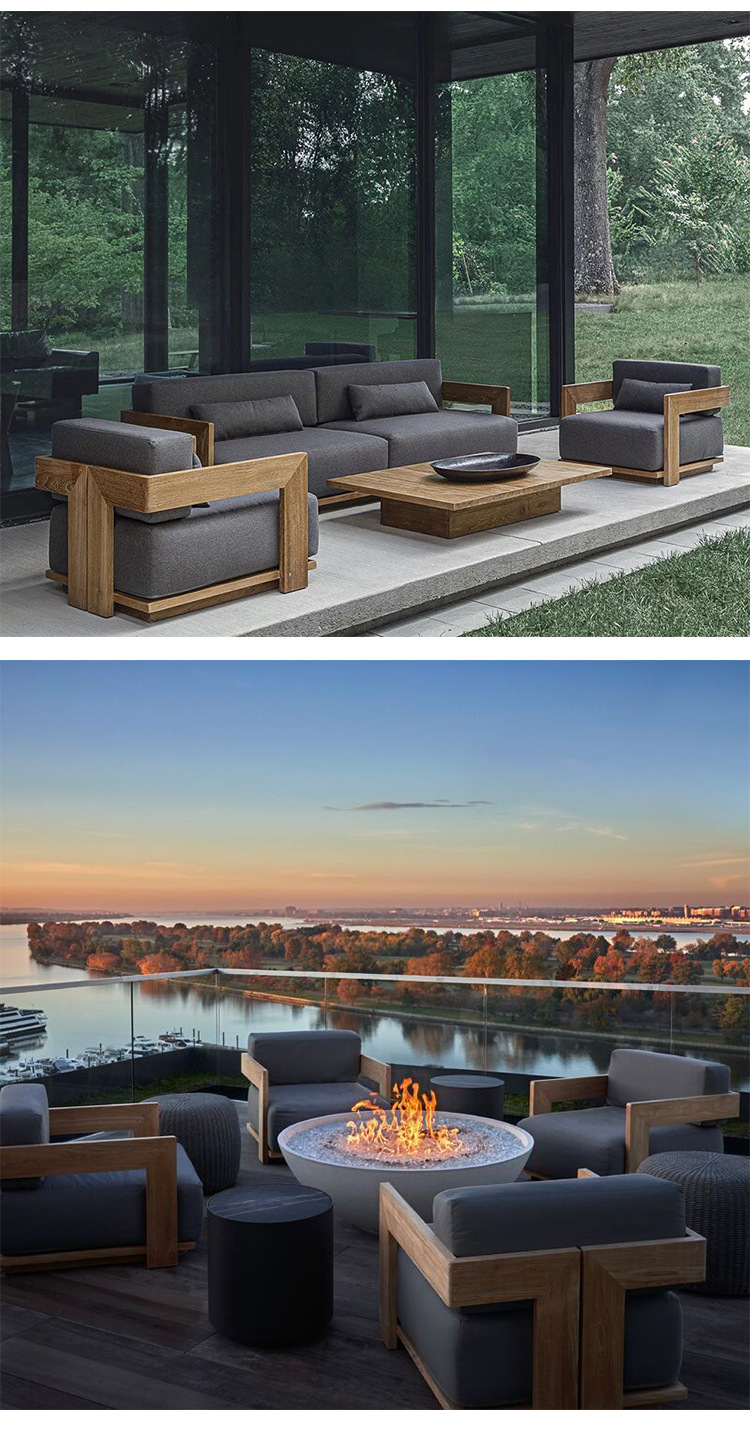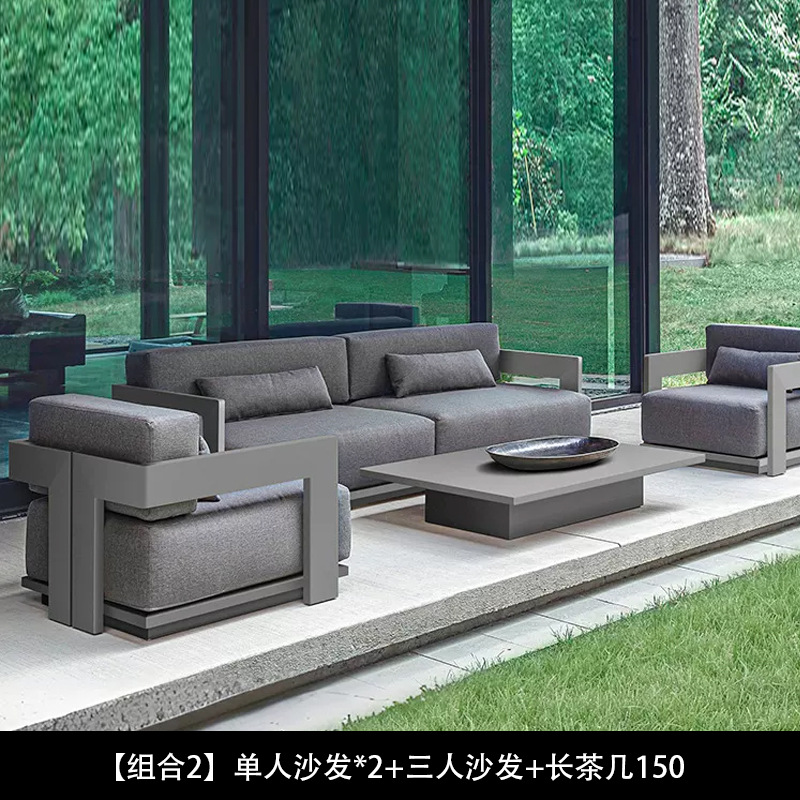 야외 소파 조합 알루미늄 합금 방수 선 스크린 티크 커피 테이블 북유럽 레저 호텔 가든 빌라 안뜰스토어 가기