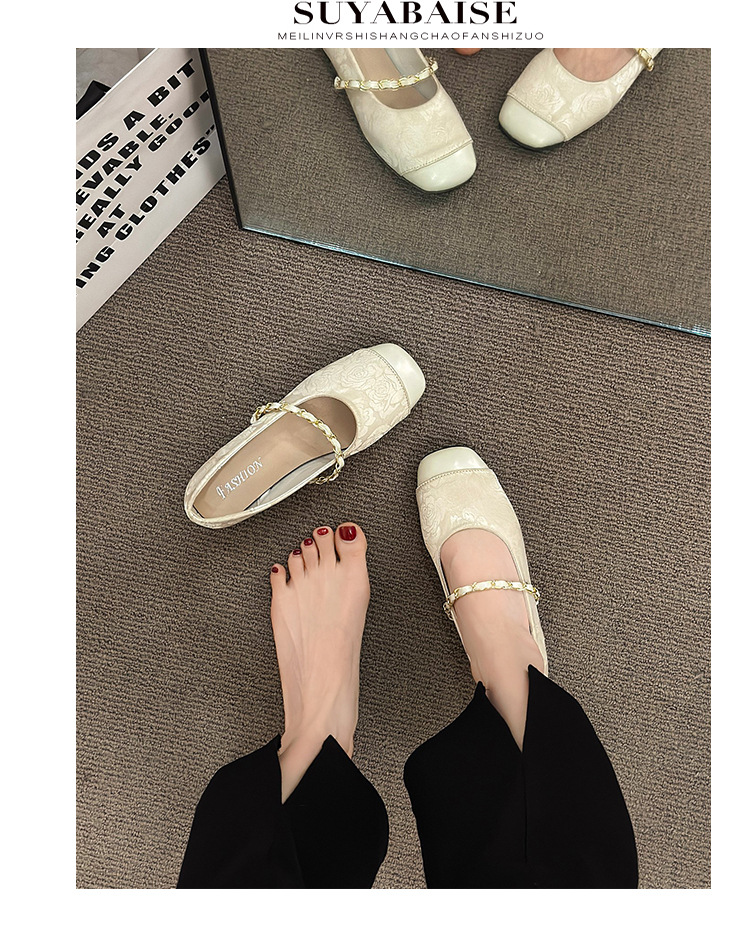 무당 신발 플랫 신발 프랑스 캐주얼 게으른 신발 싱글 신발 2024 봄과 가을 여성 신발 낮은 입 낮은 발 뒤꿈치스토어 가기