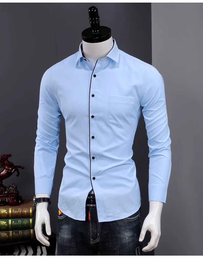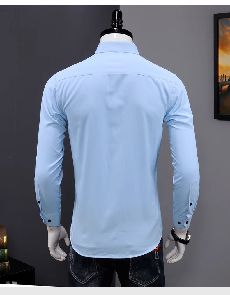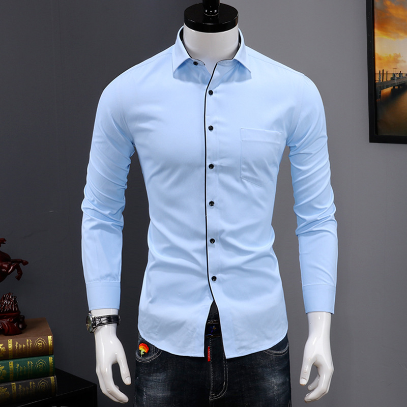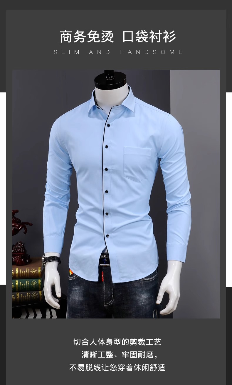 국경 간 이베이 폭발 남자 긴팔 셔츠 면 비 주름 방지 대외 무역 영국 솔리드 컬러 올 매치 셔츠 남자 롱