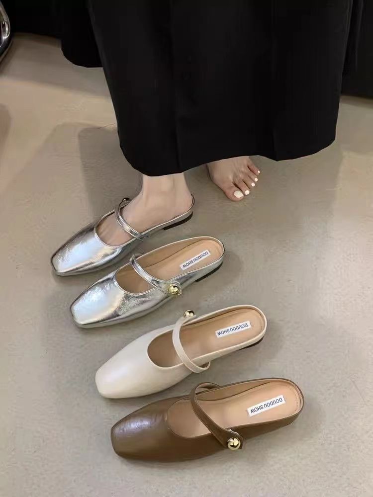 프랑스 스타일 고감도 디자인 센스 바오터우 하프 슬리퍼 여성 2024 년 여름 새로운 의상 플랫 니치 뮬러 신발스토어 가기