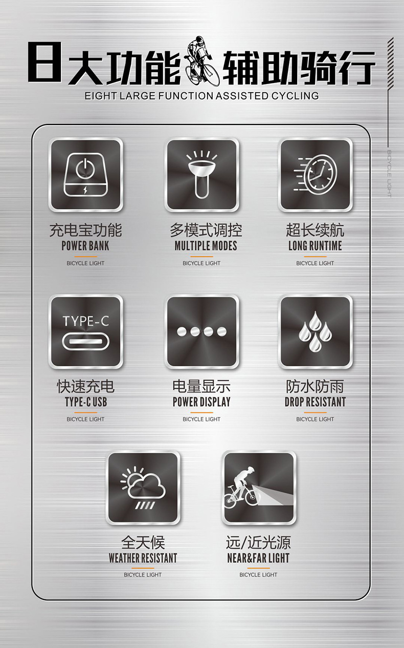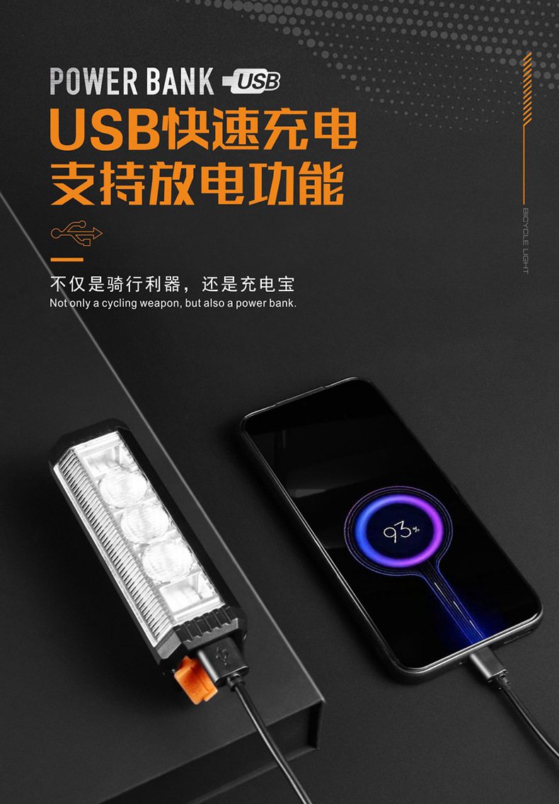새로운 2500mAh 자전거 라이트 알루미늄 합금 USB 자전거 헤드 라이트 하이라이트 야간 라이딩 손전등 야외 국경