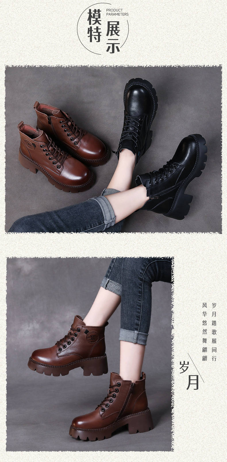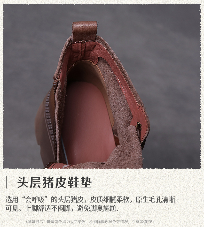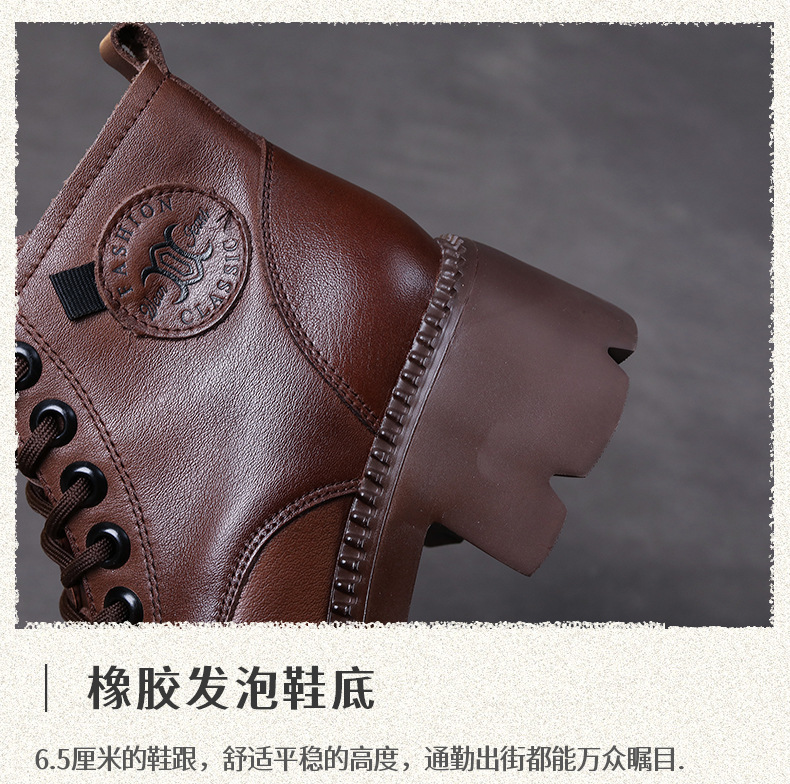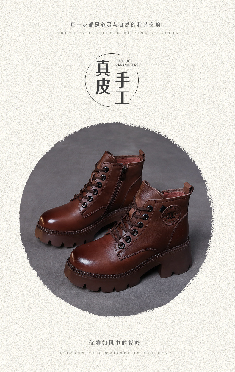 탑 레이어 소 가죽 레이스 업 여성용 가을 및 겨울 새로운 빈티지 정품 가죽 코튼 부츠 여성의 두꺼운 힐 머핀 싱글 부츠 마틴 부츠스토어 가기