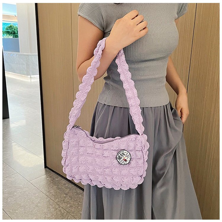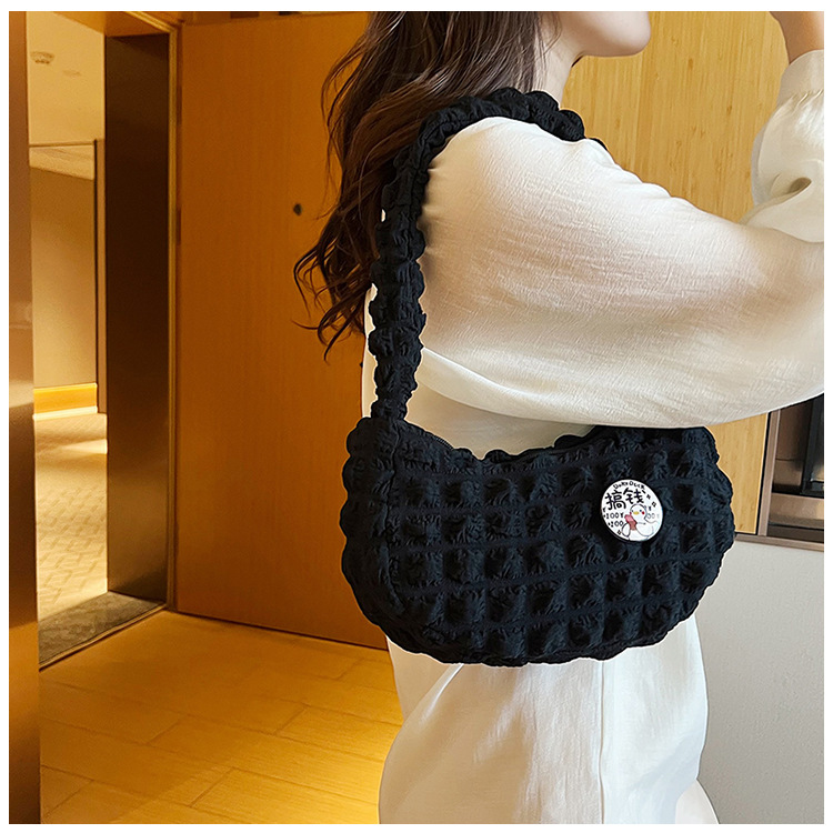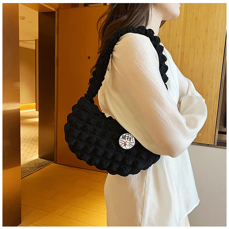 올해 유행하는 클라우드 퍼프백, 여아 패션 주름 숄더백, 심플한 단색 학생 휴대용 겨드랑이 가방