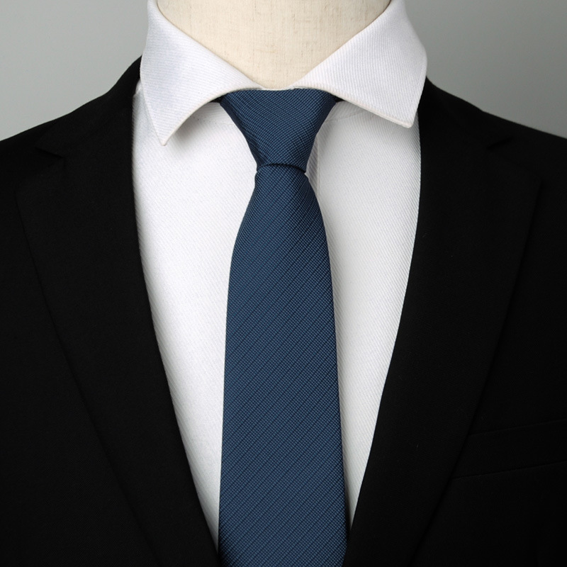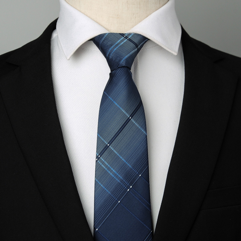 • A6040 네이비 블루 파인 체크 스트라이프 7cm